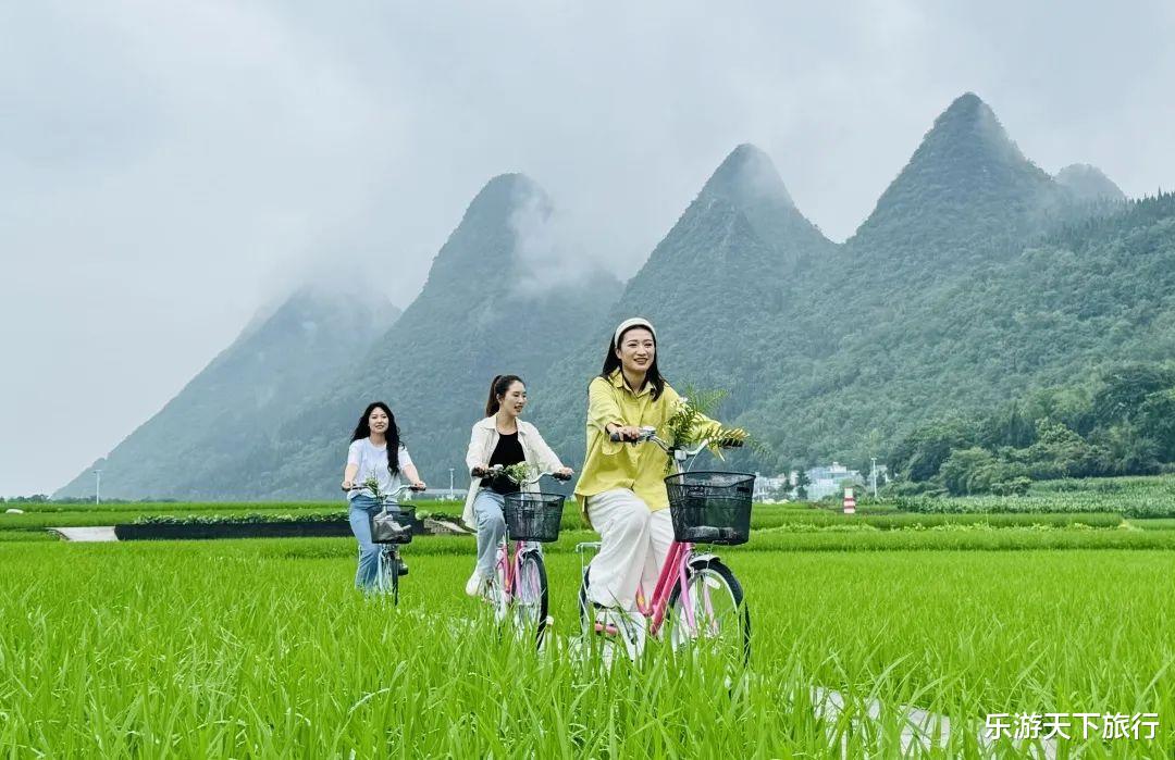 在万峰林的旅行可以很多样化,游客可以租一辆自行车,在峰林之间的乡村小道上骑行,感受清风拂面,欣赏沿途的田园风光和峰林美景,近距离接触当地的布依族村寨,体验乡村生活的宁静与美好。