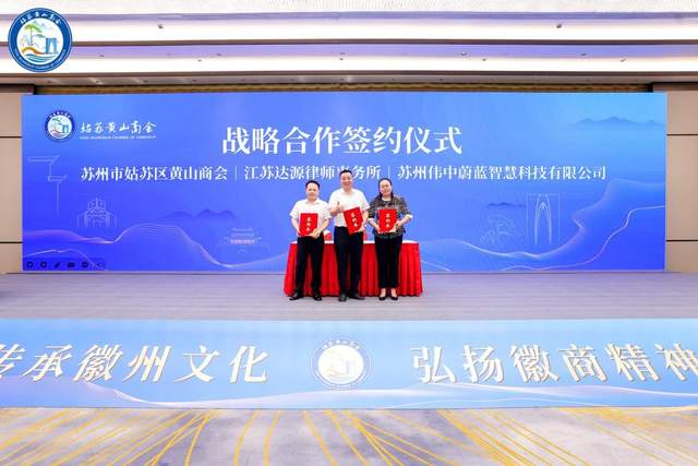商会签约江苏达源律师事务所为商会法律顾问;商会签约苏州伟中午蔚蓝智慧科技有限公司为商会财税顾问,为商会会员企业的发展提供保障。大会举行了全国异地黄山商会联盟苏州站的启动仪式,还进行了姑苏区、黄山市项目推荐活动。