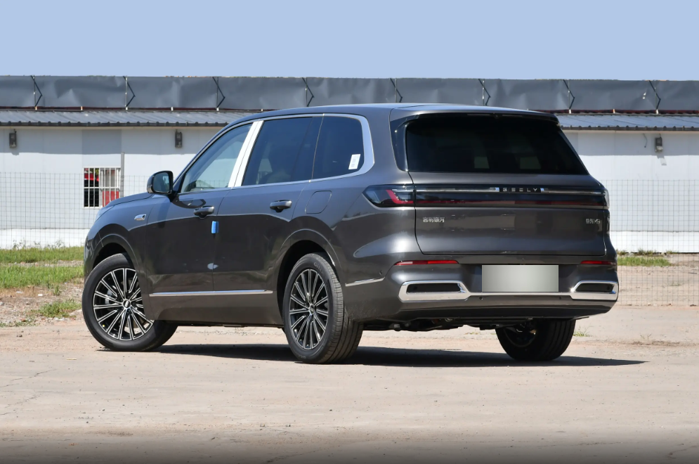 从侧面看,吉利银河M9的车身线条比较直挺,如果不是因为它的车身轮廓有较多圆弧样式的线条,恐怕会给人一种硬派越野的既视感。这款车型符合相关政策,没有采用隐藏式门把手设计,而是采用了传统且实用的机械拉环式门把手。在车尾处,它通过熏黑的贯穿式尾灯展现出一些科技感。后包围处的镀铬元素,勾勒出类似于双边共双出的排气造型。