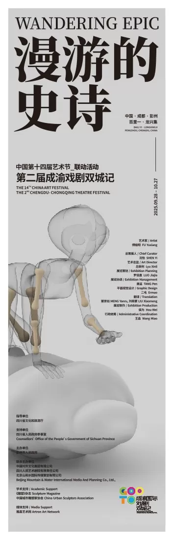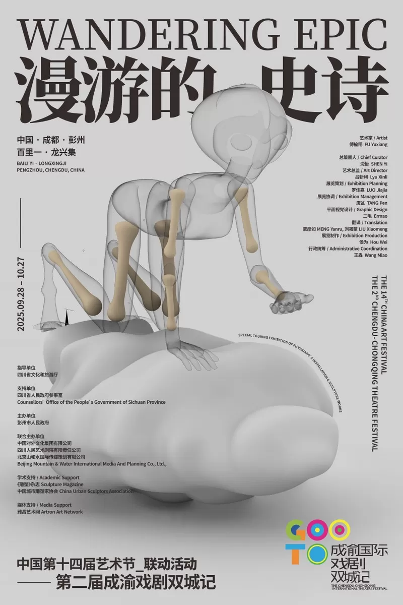 9月28日,法国国宝级电影演员苏菲·玛索将亲临成都彭州,出席国际艺术家傅榆翔大型装置与雕塑展《漫游的史诗》全球巡展第11站开幕式。此次活动作为第十四届中国艺术节暨第二届“成渝戏剧双城记”的重要单元,以“戏剧·艺术·科技·生活”为主题,汇聚中外文化的深度对话与跨界交融。