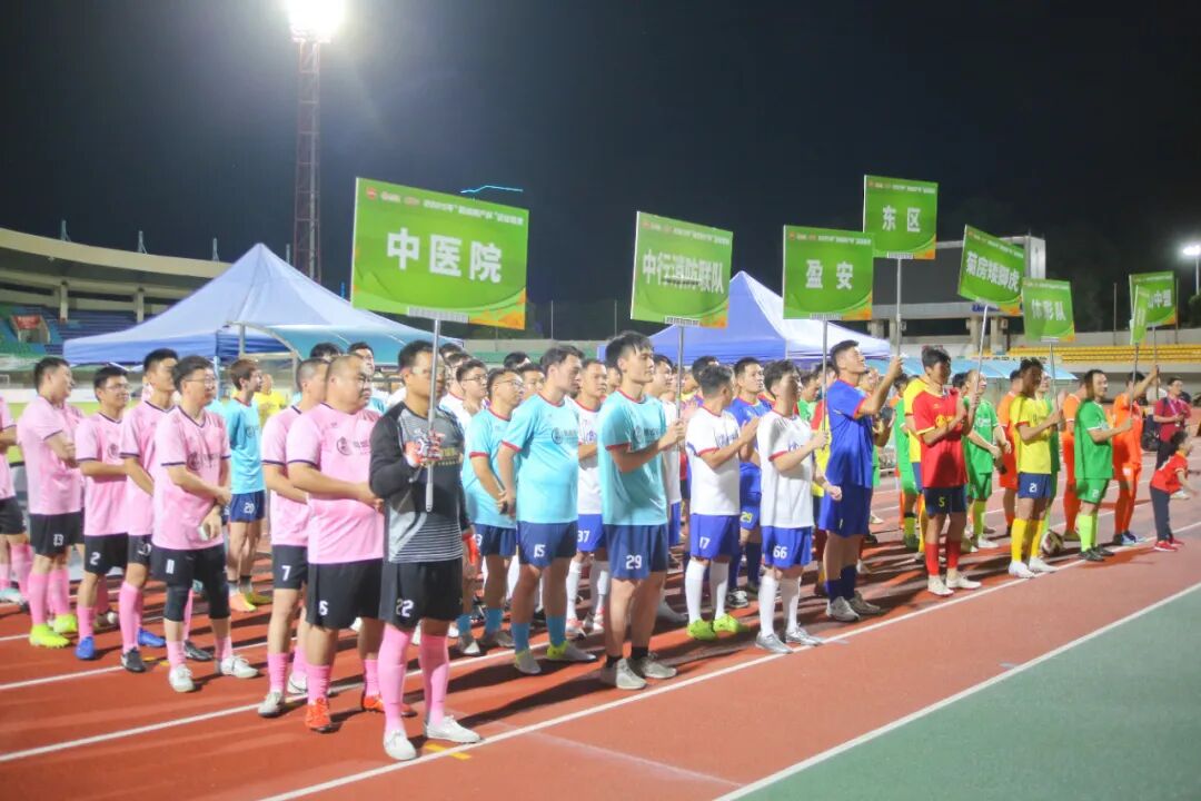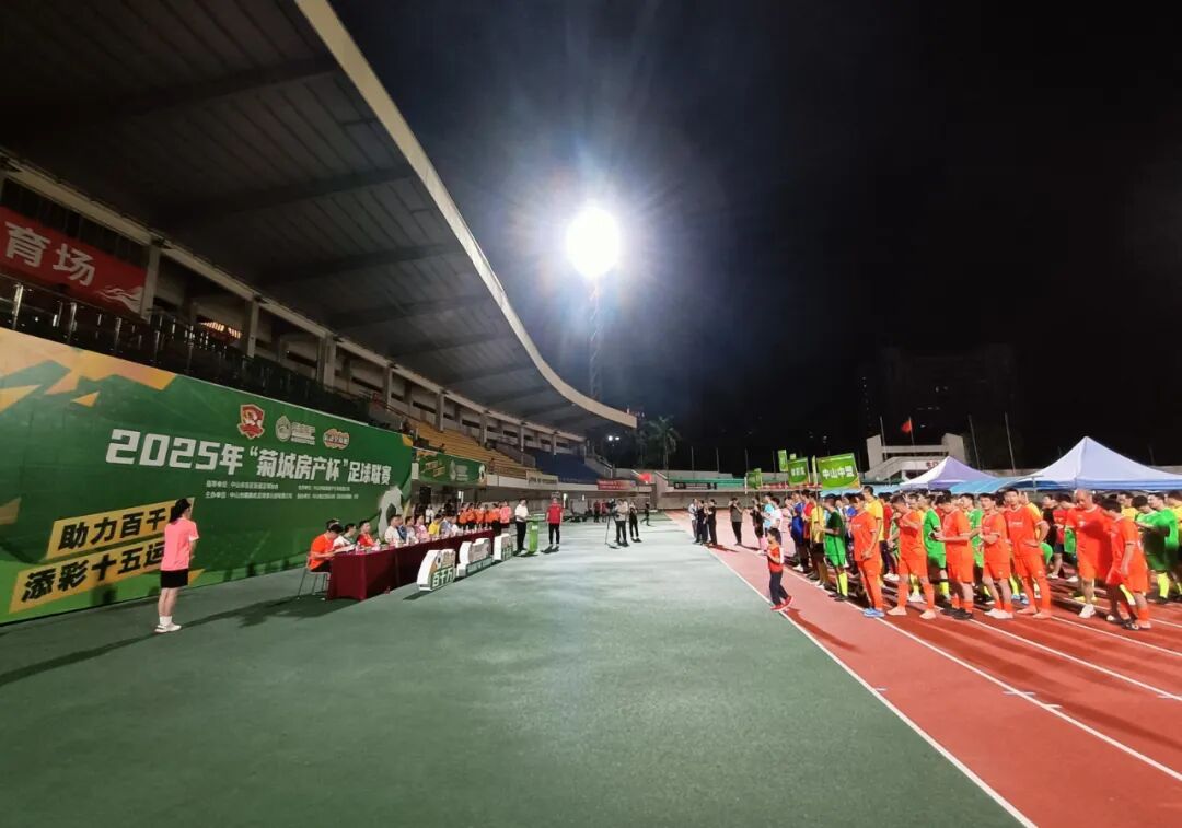 10月13日晚,中山市兴中体育场灯火通明、人声鼎沸,“助力百千万,添彩十五运”——2025年“菊城房产杯”足球联赛在此激情开幕!八支劲旅强势集结,政企嘉宾共同开球,标志着这场持续一个多月的草根足球盛宴正式拉开战幕,这也是继“中山镇超”之后,再次为中山日益火热的群众体育再添一把“燎原之火”。