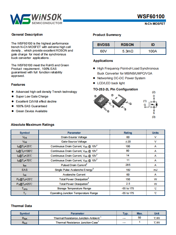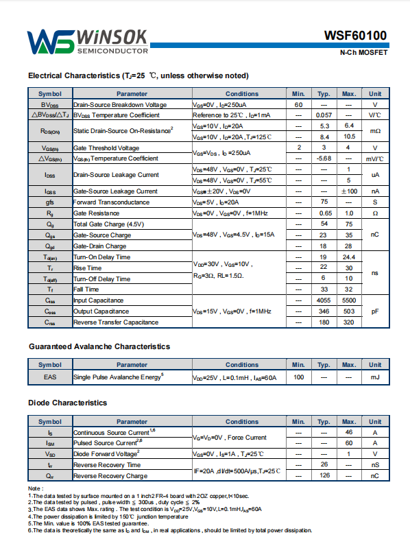 随着“一脚踢”电动尾门向15万元车型下沉,直流电机功率从400 W提升至800 W,峰值电流瞬间突破100 A,对功率MOSFET提出“极低导通电阻、超大电流、高雪崩能量”三大挑战。微硕WINSOK推出的WSF60100 N沟MOSFET,以60 V耐压、5.3 mΩ超低导通电阻及TO-252-2L封装,单颗即可连续输出100 A,两颗并联组成H桥同步整流,助力尾门ECU减重25 %、效率提升6 %,成为主机厂布局“快速开闭+电吸锁”尾门的理想功率级方案。