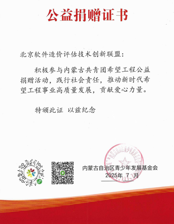 联盟始终秉承“技术为善、公益同行”的理念,积极履行社会责任,此次捐赠不仅是对内蒙古希望工程事业的支持,更是联盟践行公益初心的具体体现。未来,联盟将继续携手社会各界,为青少年的成长和发展贡献力量,共同书写新时代公益事业的新篇章。(来源:北京软件造价评估技术创新联盟)