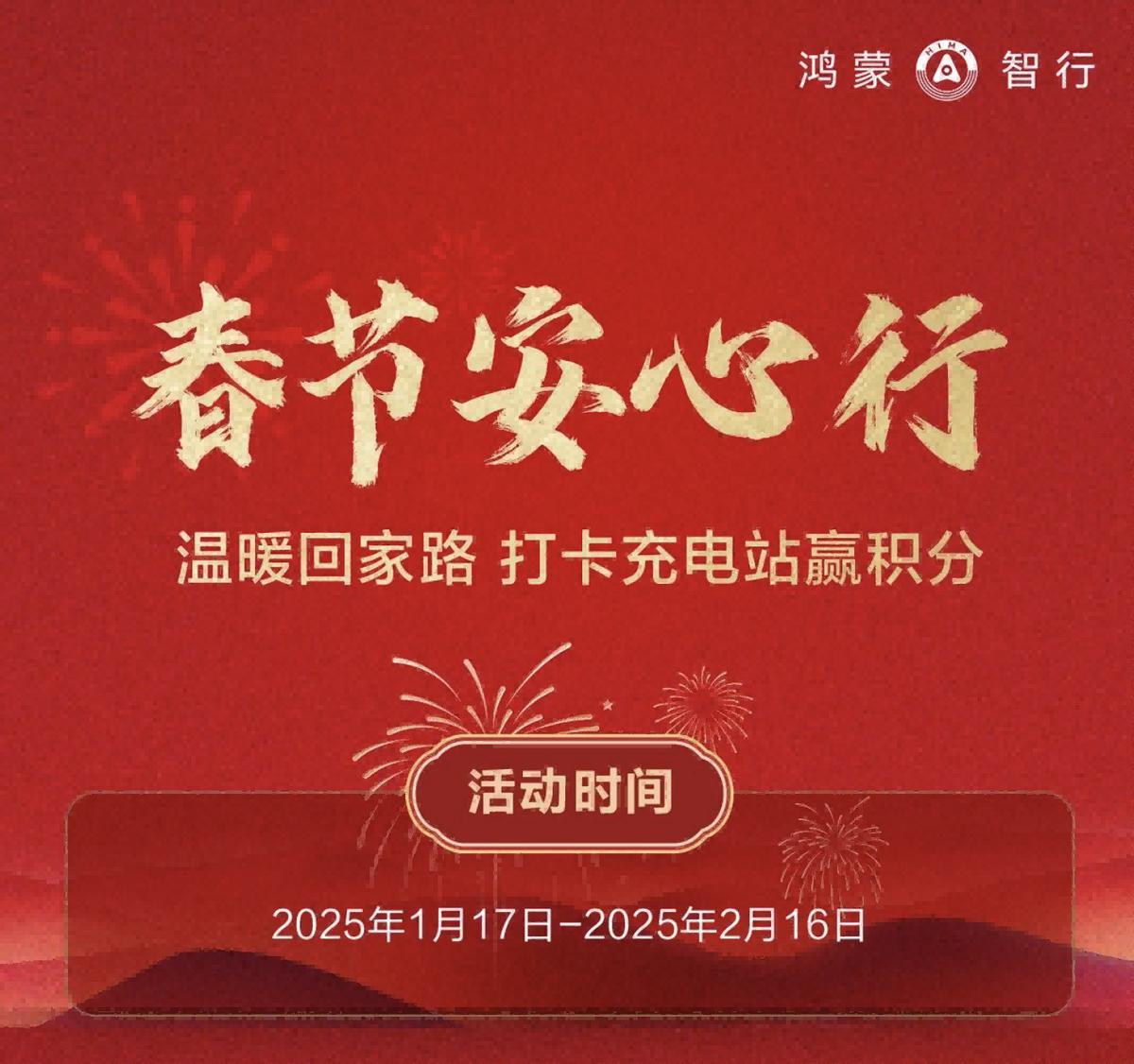 随着春节的钟声渐行渐近,全国上下洋溢着浓厚的节日氛围。在这个中国人最为重视的传统节日里,归家的心情如同潮水般汹涌澎湃。为了确保每一位车主的春节归家之旅平安顺畅,鸿蒙智行在1月17日至2月16日这长达一个月的时间里,精心策划并推出了“春节安心行”系列活动,以专业、主动、有温度、超预期的服务,为全国车主送去了温暖与关怀,赢得了用户的一致好评。