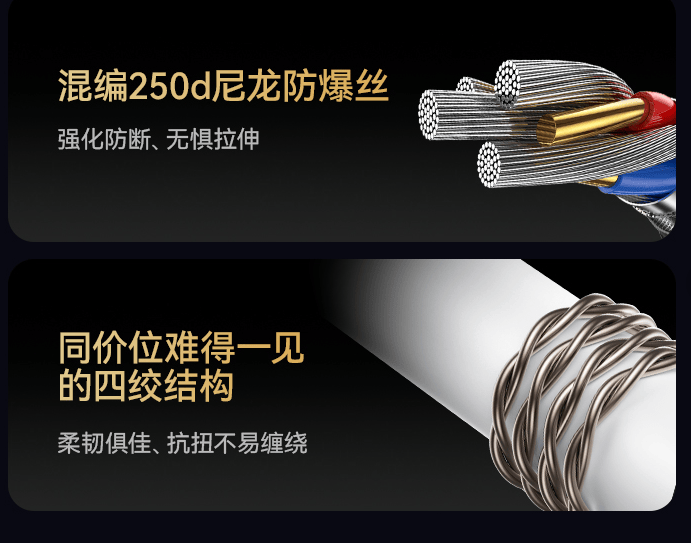 随耳机标配的线材同样下足功夫,采用了182芯高密度镀银同轴线。线材内部以高纯度无氧铜为基底,表层精密镀银处理,实现“高导电+高频透亮”的双重效果。银质镀层让高频延展更加顺滑细腻,听感更加开放;无氧铜基材则保证低频厚实有力,音乐重放更加稳定纯净。多股并行的结构有效降低信号阻抗和失真,确保每个音符都快速、完整地传输到耳机单元,带来沉浸级的声音还原力。这样精密的线材构造堪称HiFi耳机界的“白银动脉”,使西圣Hifi有线耳机真正实现了线材对音质的全方位保障。