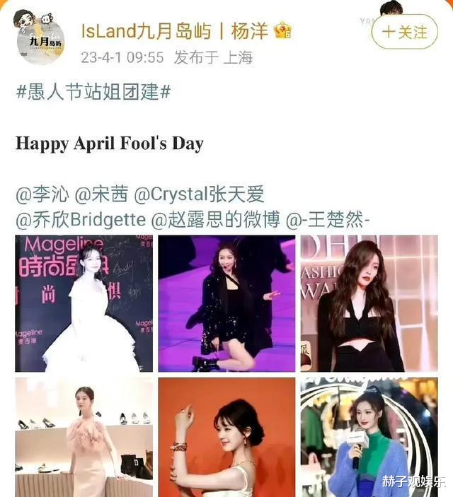愚人节时,杨洋的粉丝站负责人分享了杨洋的6位明星前女友合照,依次为李沁、宋茜、张天爱、乔欣、赵露思和王楚然,均为绝色佳人,杨洋择偶眼光果然独到。