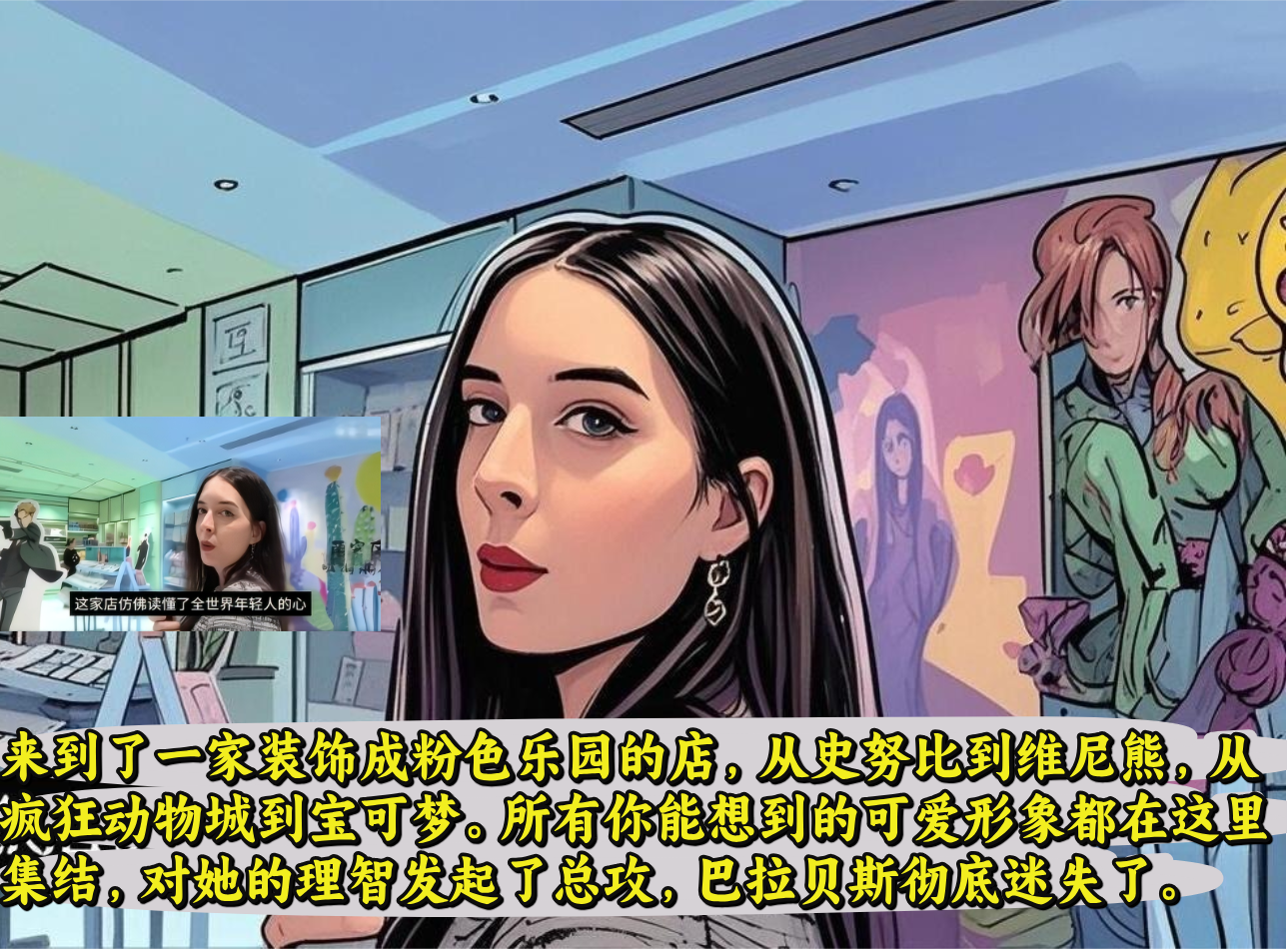 所有你能想到的可爱形象都在这里集结,对她的理智发起了总攻,巴拉贝斯彻底迷失了她像一个巡视自己领地的女王,在货架间穿梭,抚摸着每一个柔软的玩偶,惊叹于她们不可思议的柔软触感。
