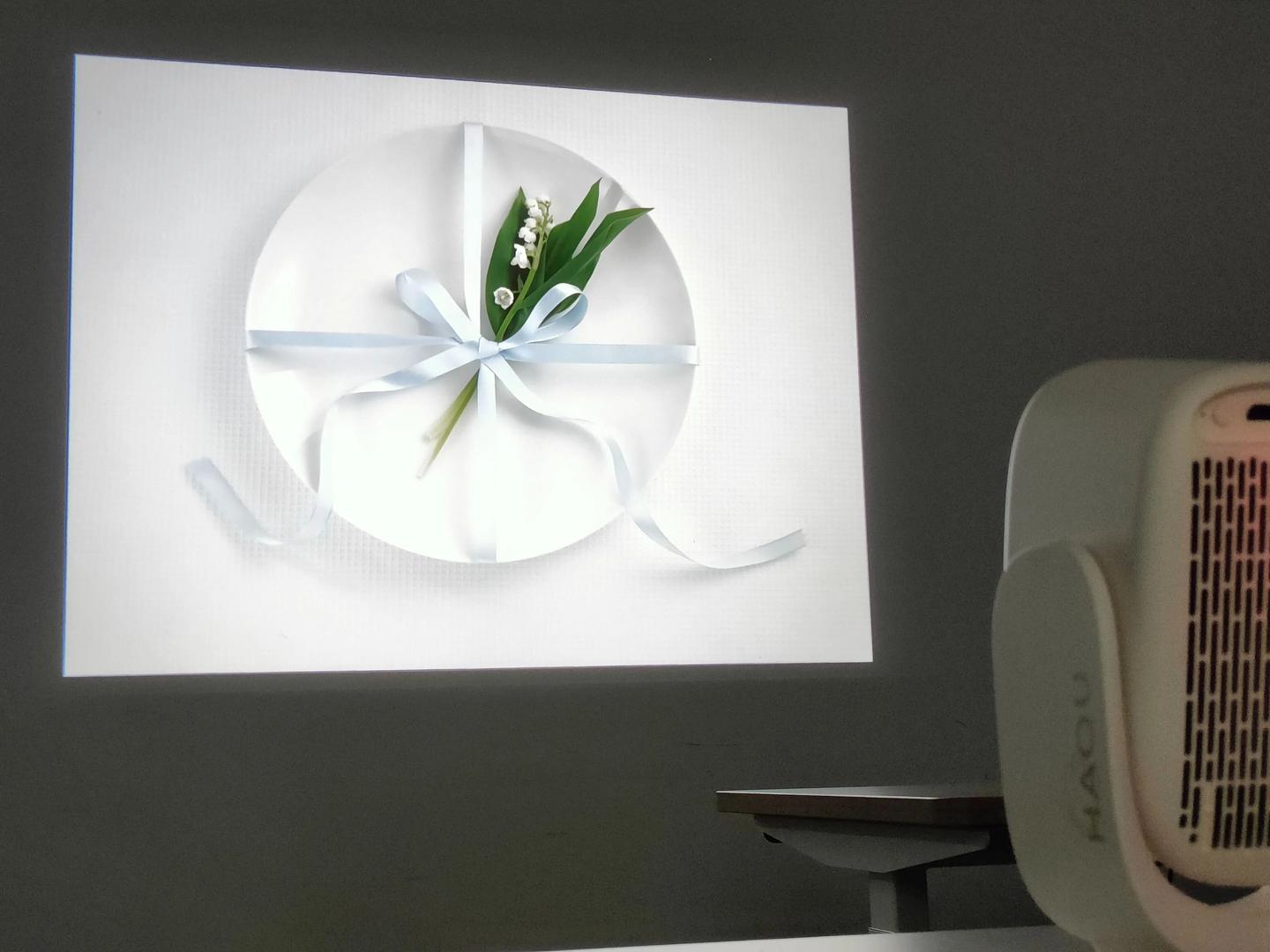 本来没抱太大希望在工作室投白墙的效果,结果 Q1 Pro 的亮度真的超出预期 —— 它标了 370 CVIA 流明,还是京东认证的,不是那种虚标的数值。晚上工作室就开着门口射灯,投到墙面上的画面,细腻而温和。
