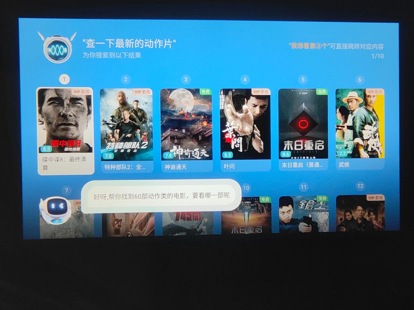有时候自己都不知道想看电影,懒得打字,就长按遥控器的语音键,说 “查看一下最新的动作片”,推荐结果立马就出来了,连我有时候口误说错,它都能猜出我的意图,比我自己搜还快。这是因为投影仪接入了豆包、DeepSeek 这些 AI 大模型,问它 “这部电影讲的啥”“推荐类似的影片”,都能秒回应,跟个小助理似的,在工作室待着再也不会无聊了。
