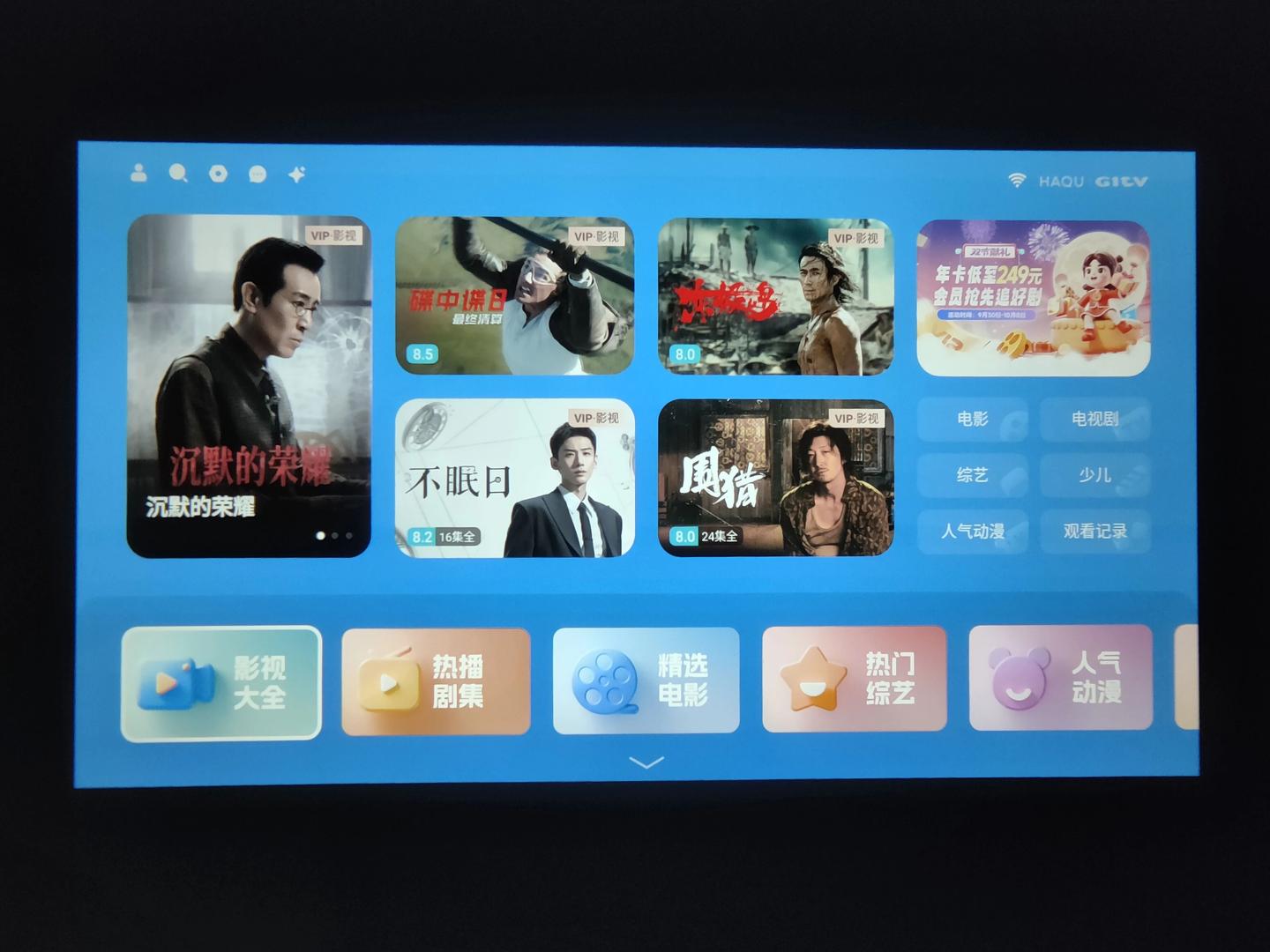 打开电源键,投影仪直接进入主界面了,干净纯净,完全没有那些乱七八糟的弹窗。它使用的是当贝超级 AI OS 系统,跟索尼、三星那些大牌电视是一个服务商,操作起来跟刷手机似的,图标清楚明了,如果放家里,小人长辈也能轻松使用。