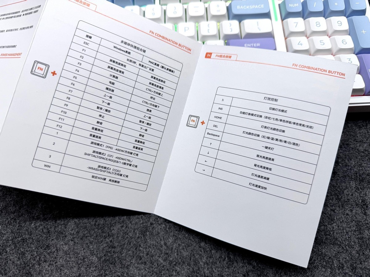 打开包装键盘用专门定制的垫子妥善保护,配件放在一个橙色的专用盒子里,仪式感十足。
