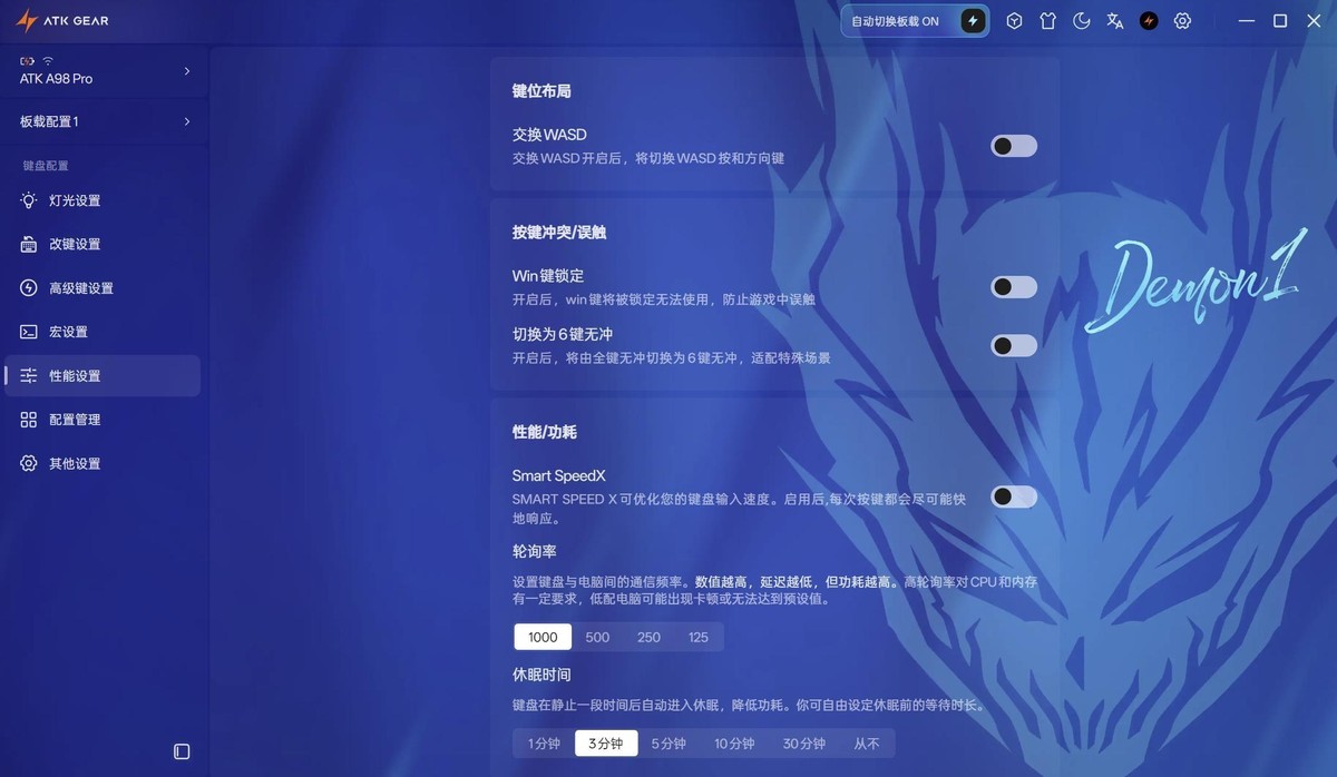 SMART SPEED X可优化键盘输入相应速度,125-1000Hz可调轮询率带来更极致的游戏体验