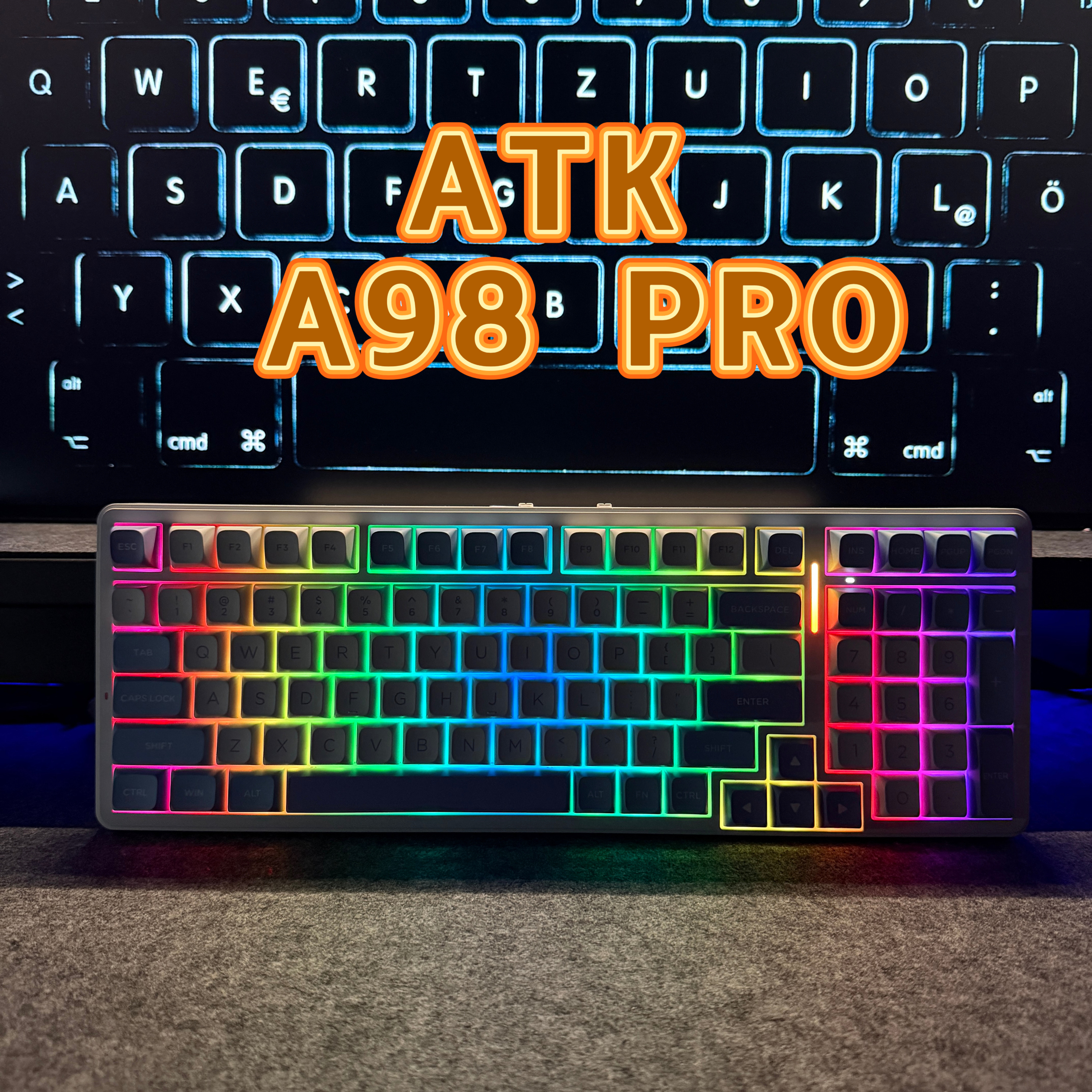 之前一直用75配列的键盘,虽然体积小但是少了数字小键盘始终觉得不便,104键盘又太大,于是趁着双11入手这款ATK的A98 PRO三模键盘。