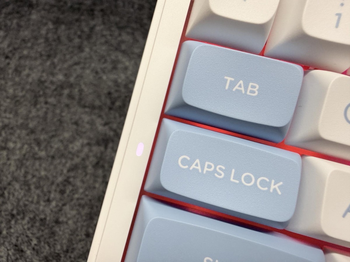 键盘的大写指示灯设计在了大写锁定键的旁边,可以更节省空间。