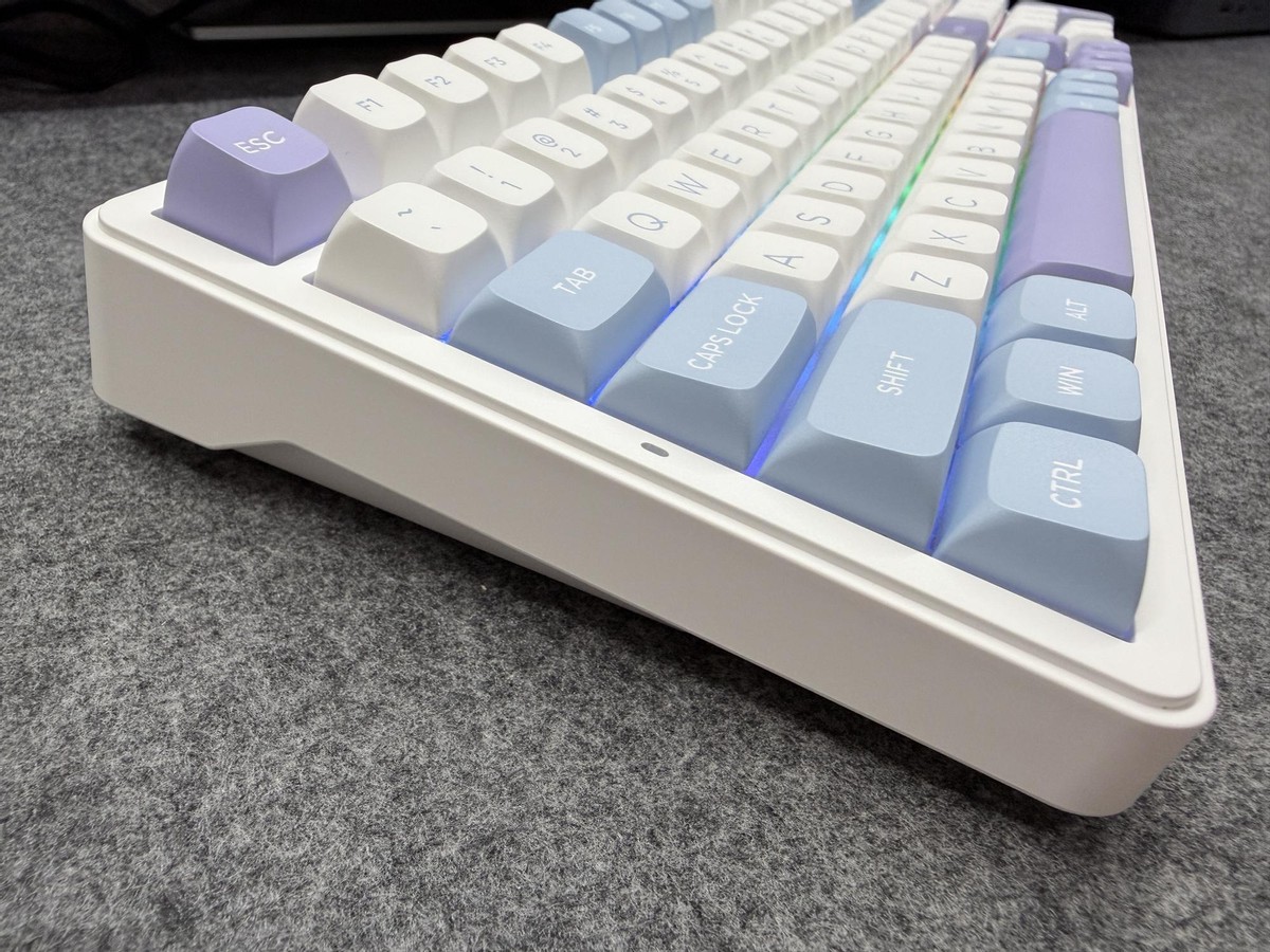 A98 PRO高PBT含量的键帽表面做了细微的磨砂处理,手感非常好,手指放上去就忍不住想要轻轻抚摸这种舒适的触感。键帽采用的是原厂高度,五面热升华工艺颜色更鲜艳更耐磨不易打油。