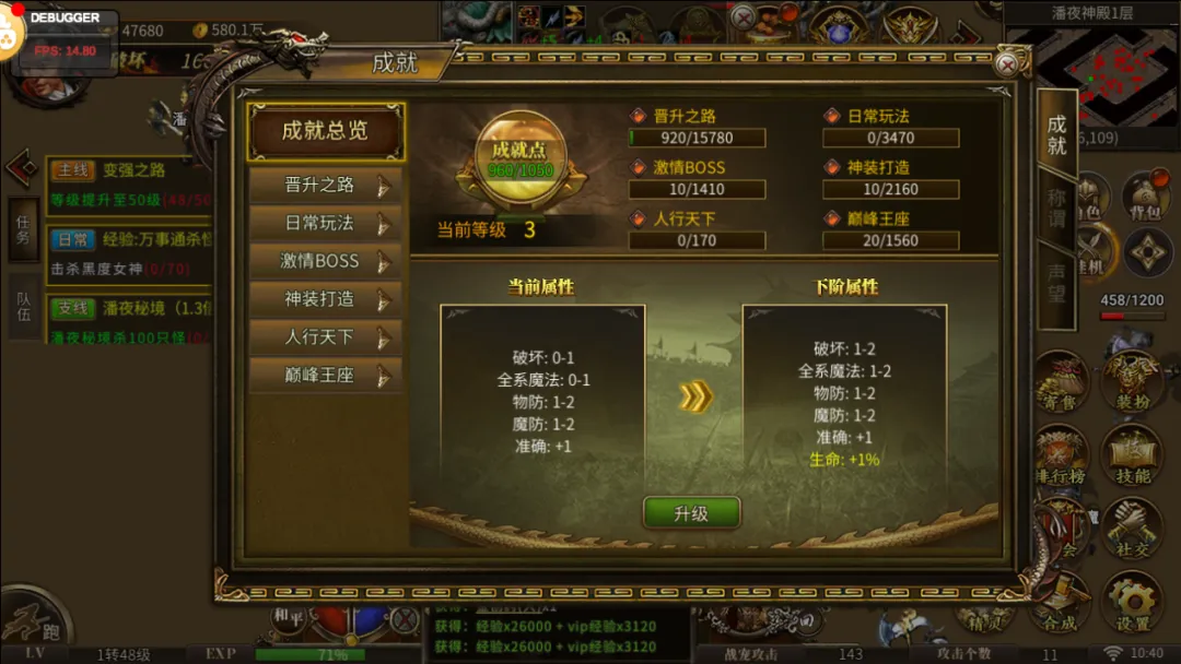 高级装备:比普通装备更好,通常在高级地图中掉落,能帮助玩家更顺畅、更快地打怪升级。