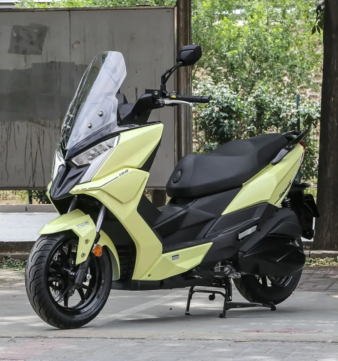 首先是这个外观方面来看看,升仕150D的风格和光阳的Racing系列是完全不一样的,虽然都是运动踏板,但是车壳的设计一个是机甲风,一个圆润的偏向商务感。