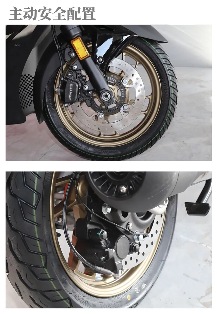 安全性方面,升仕150D前后轮均为正新CST半热熔轮胎,轮胎尺寸为前后14寸,前轮为100-80-14,后轮为120-70-14。