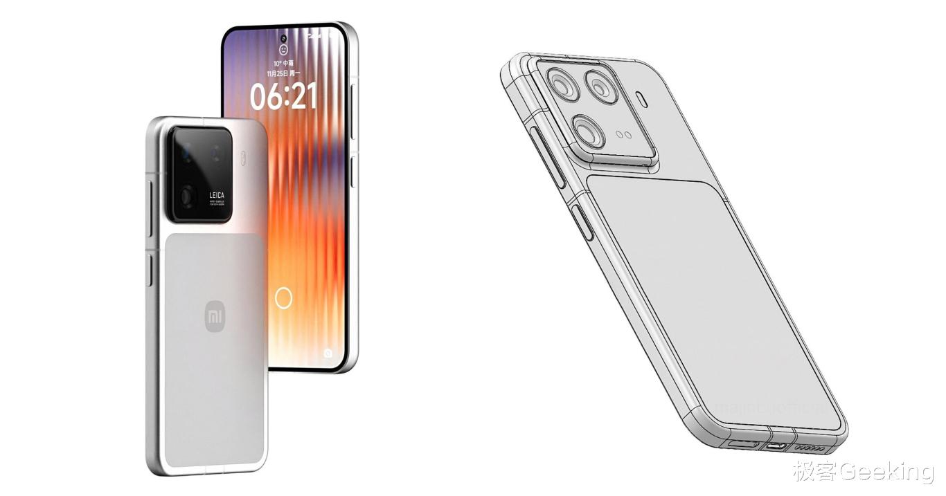小米17 标准版的外观依然延续小米15 的设计风格,也就是直屏+直角边框+居左矩形后摄Deco 的设计语言,有曝光的外观渲染图如下图:
