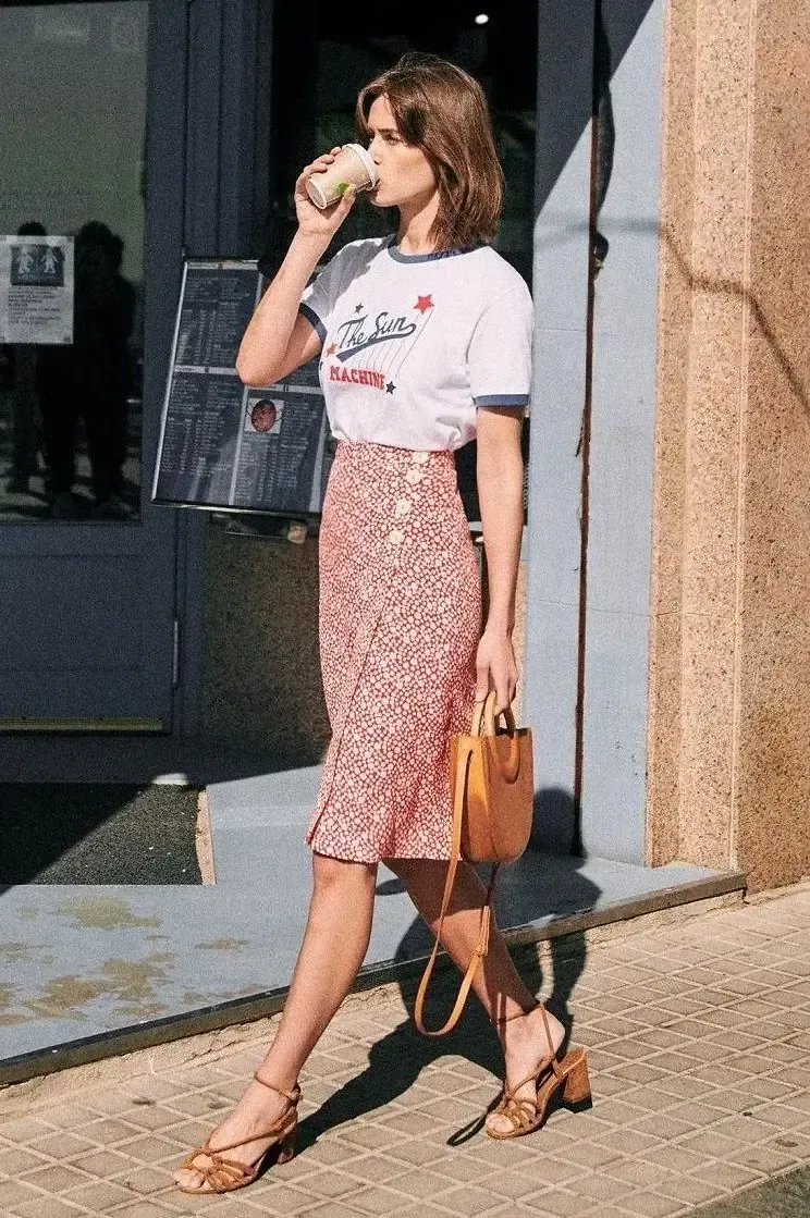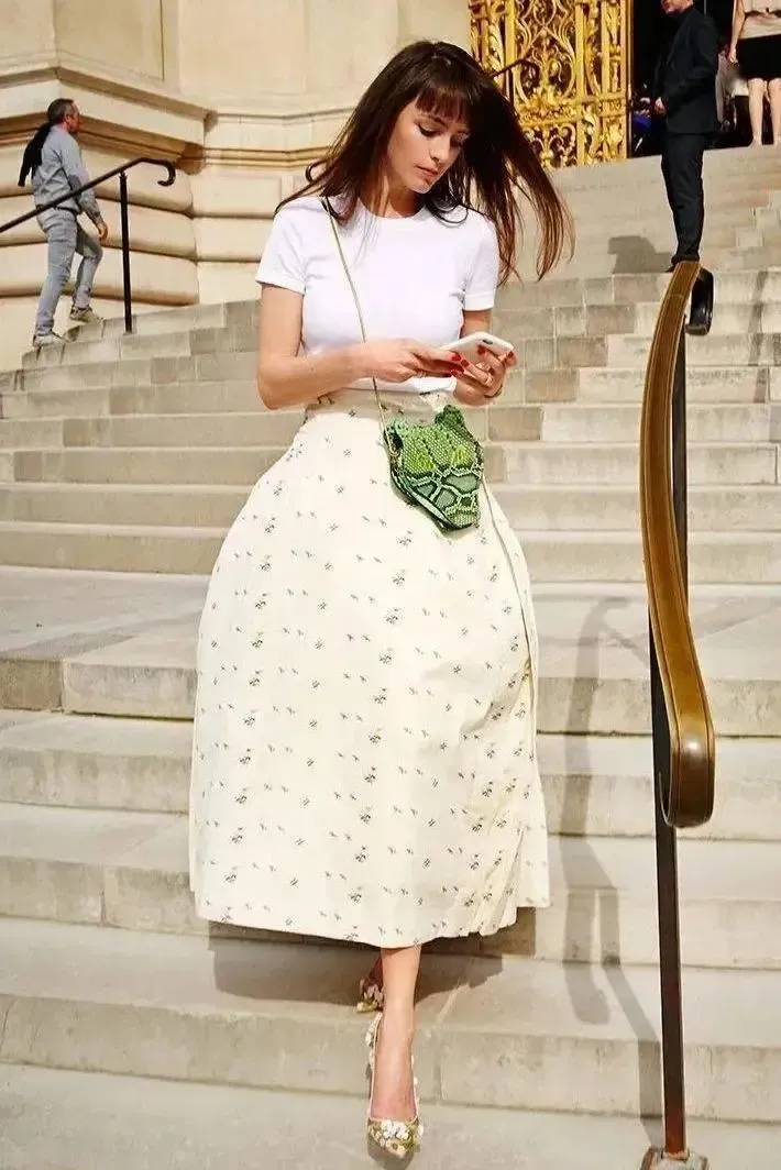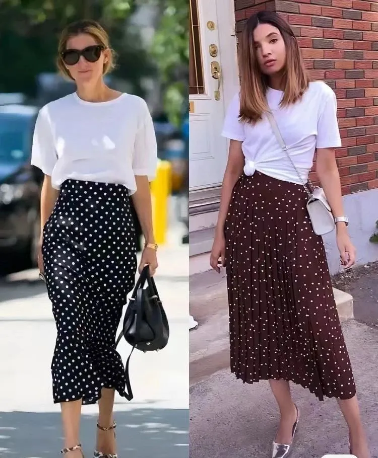 选择一款色彩清新的波点半身裙,无论是经典的黑白波或者活泼的彩色波点,都能与各式各样的T恤完美融合,展现出不同的风格魅力。