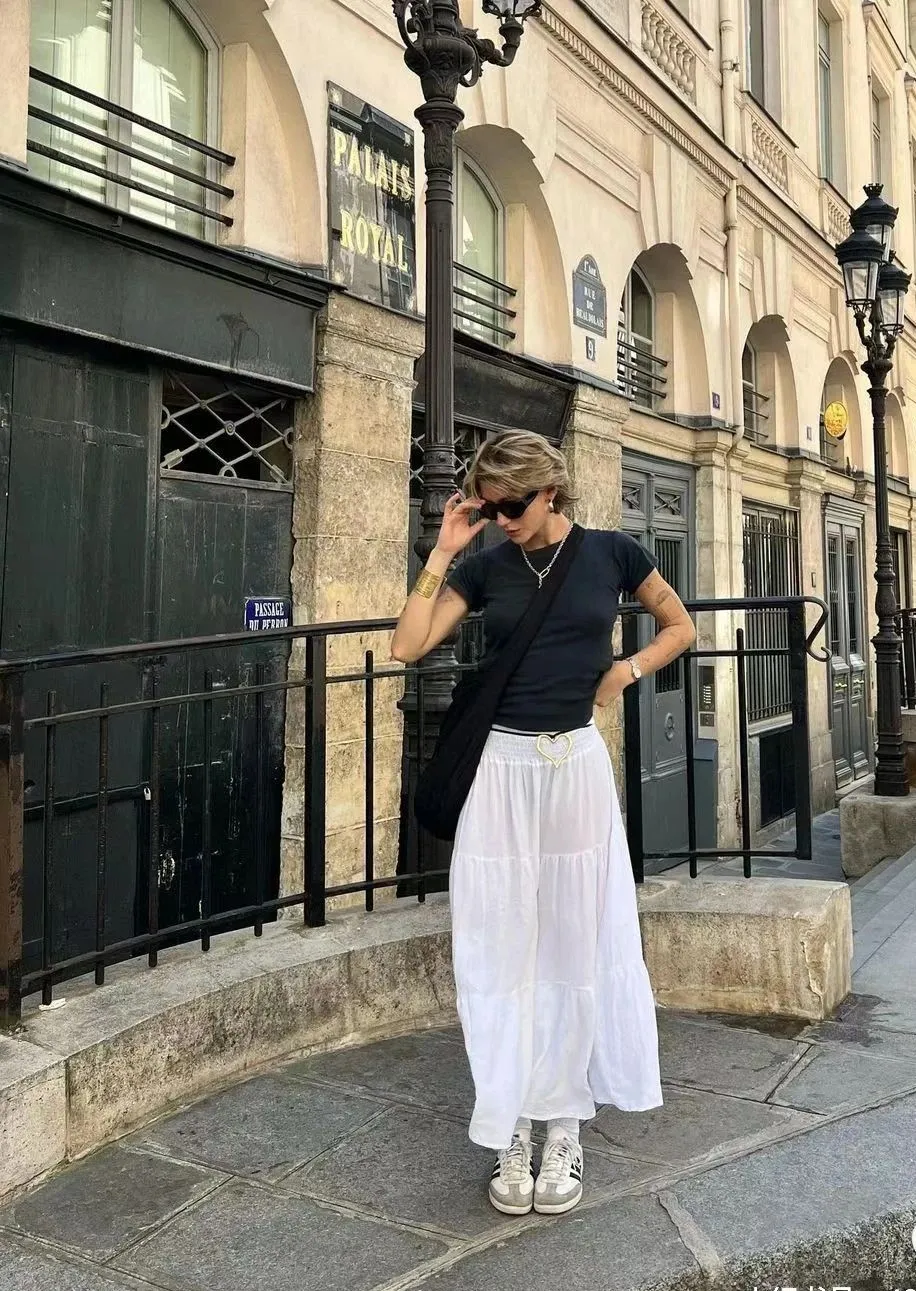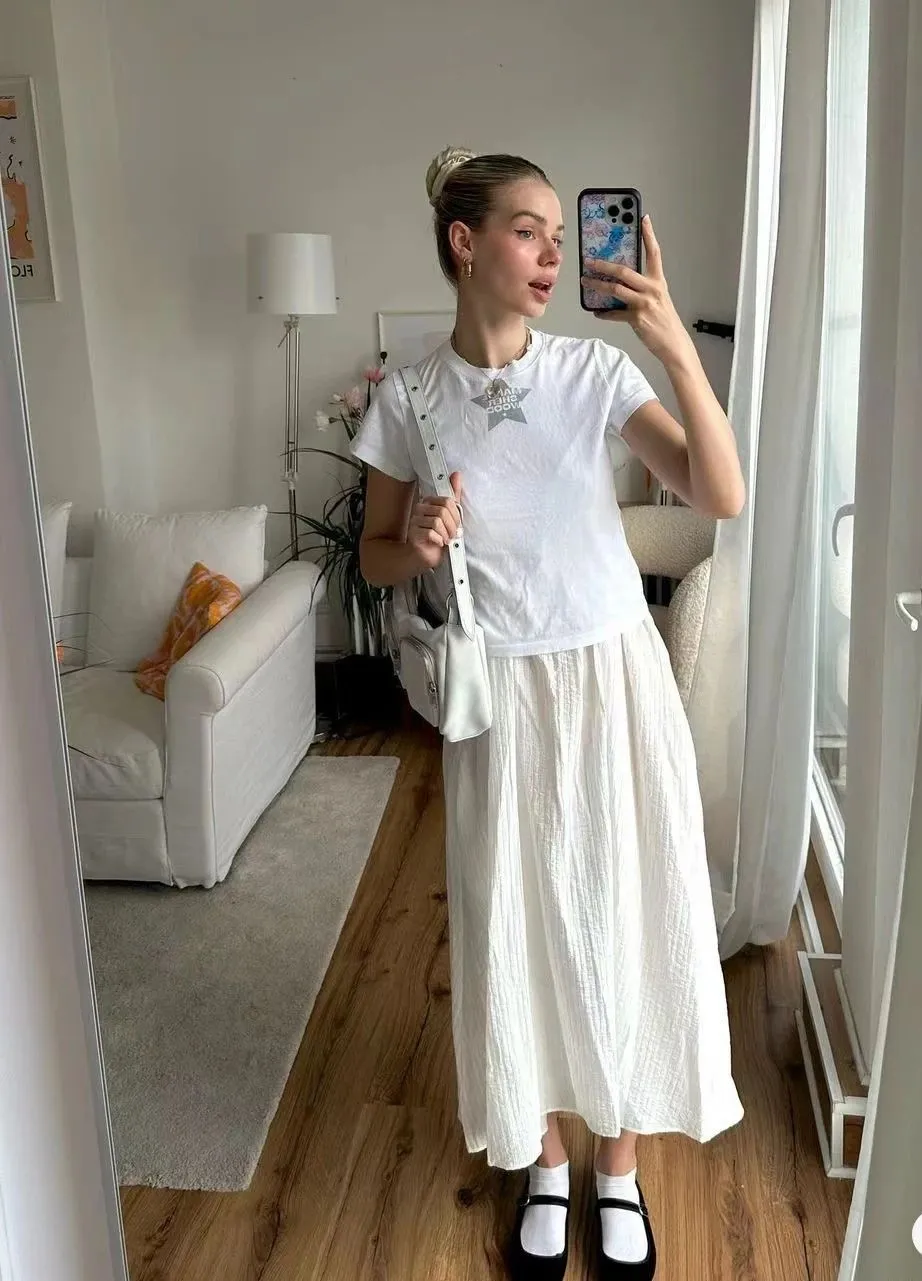小白裙的魔力在于它的百搭性,搭配一件简约的T恤,就能打造出随性自然的休闲风,简约松弛,高级感满满~