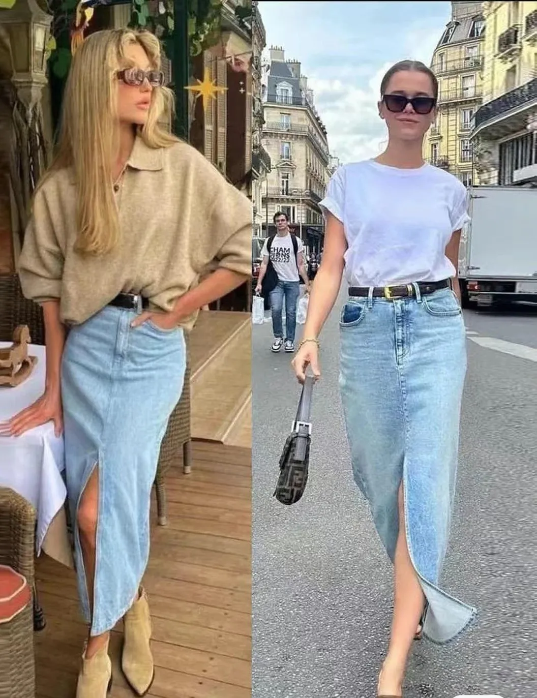 当轻薄的纯棉T恤遇上硬朗挺括的牛仔半身裙,又会有怎样的惊喜呢?