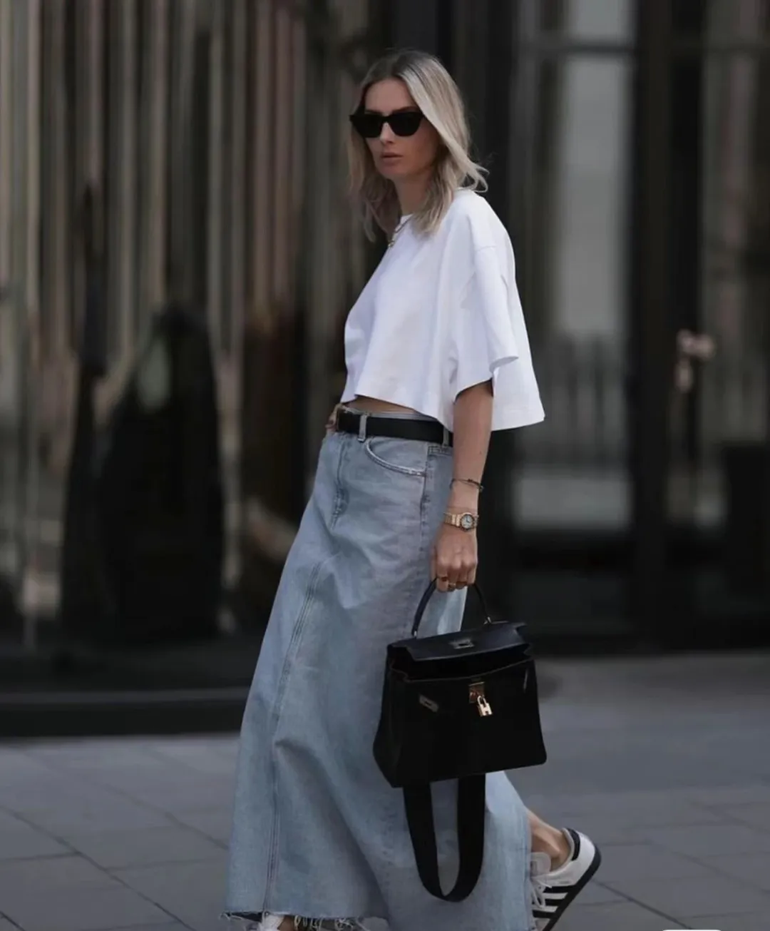 但不要忘了,配饰也是提升整体造型感的关键。可以像ins博主一样搭配一款腰带,不仅不仅增添整体造型亮点,还能分割腰线,成为街头时髦复古的摩登女郎~
