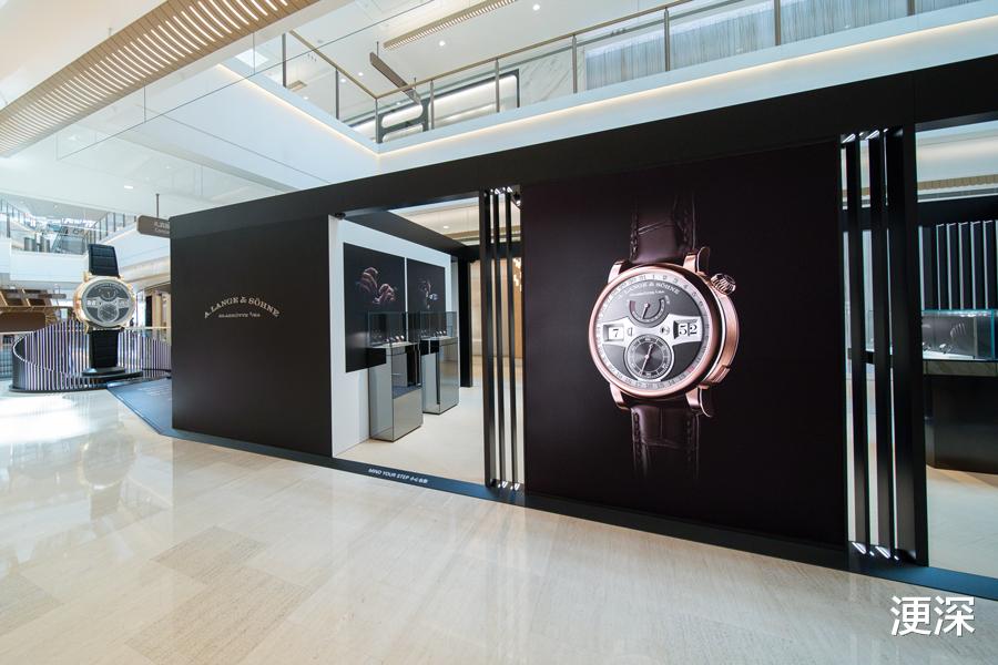 朗格限时精品店设于上海恒隆广场一层中庭,同时呈献ZEITWERK时间机械日历巨型腕表装置