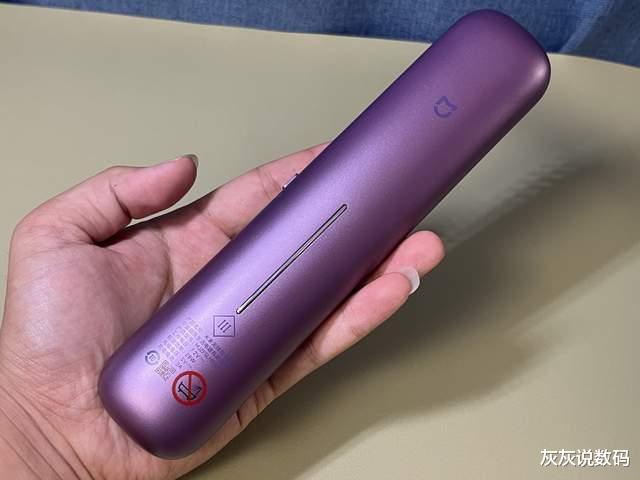 米家无线直发梳的外观设计简约时尚,紫色磨砂的机身在光照下呈现出渐变的效果,给人一种眼前一亮的感觉。整体造型紧凑,线条流畅,宛如一位优雅的舞者,既美观大方又符合现代人的审美理念。梳子的尺寸小巧,仅比普通手掌大一点,重量仅为269克,非常轻便,方便携带。无论是放在家中梳妆台上还是放进包包里随身携带,都不会占用太多空间,为日常使用带来了极大的便利,手柄的设计符合人体工程学原则,握感舒适,不易滑动,让用户在操作过程中能够更加轻松自如。
