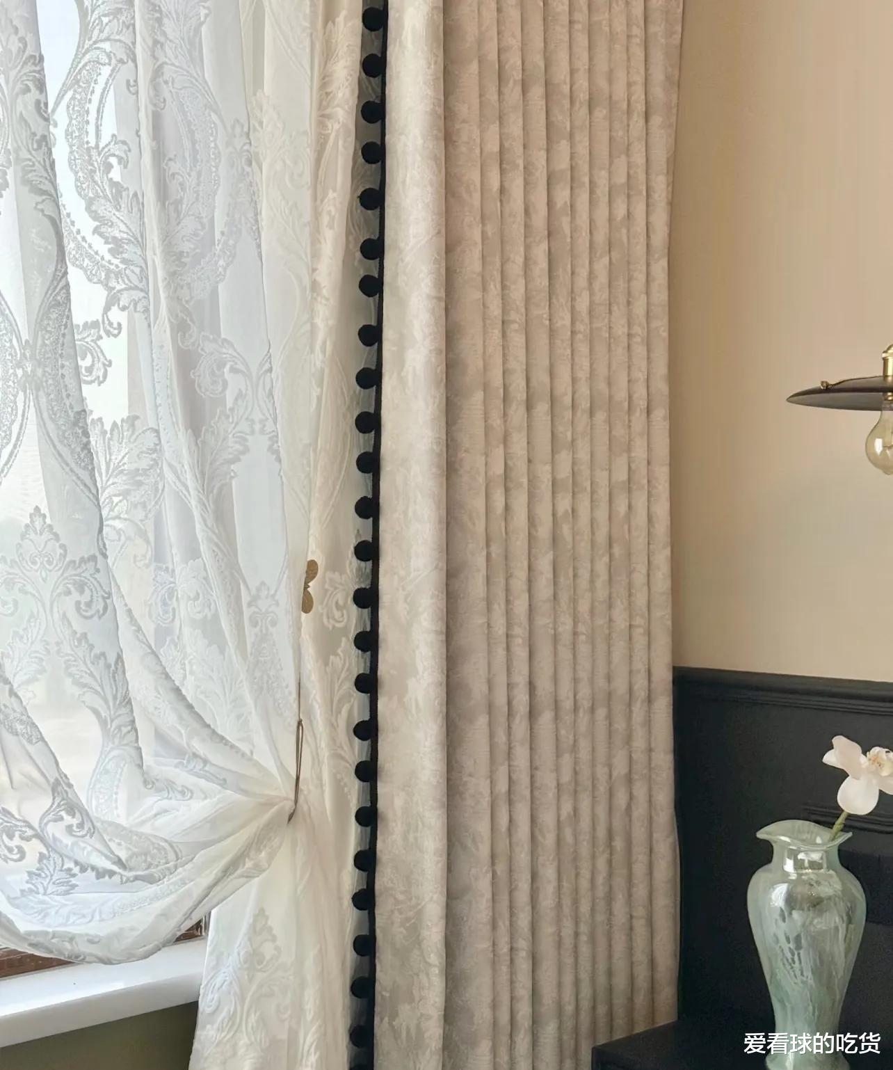 接着是窗帘毛球花边,几块钱就能让你的窗帘瞬间变身法式浪漫风!我之前一直想换窗帘,结果看到这个,立马就省下几千块!虽然自己动手缝上去费点劲,但是效果真的超赞!那种复古的感觉,立马就出来了,太有成就感了!