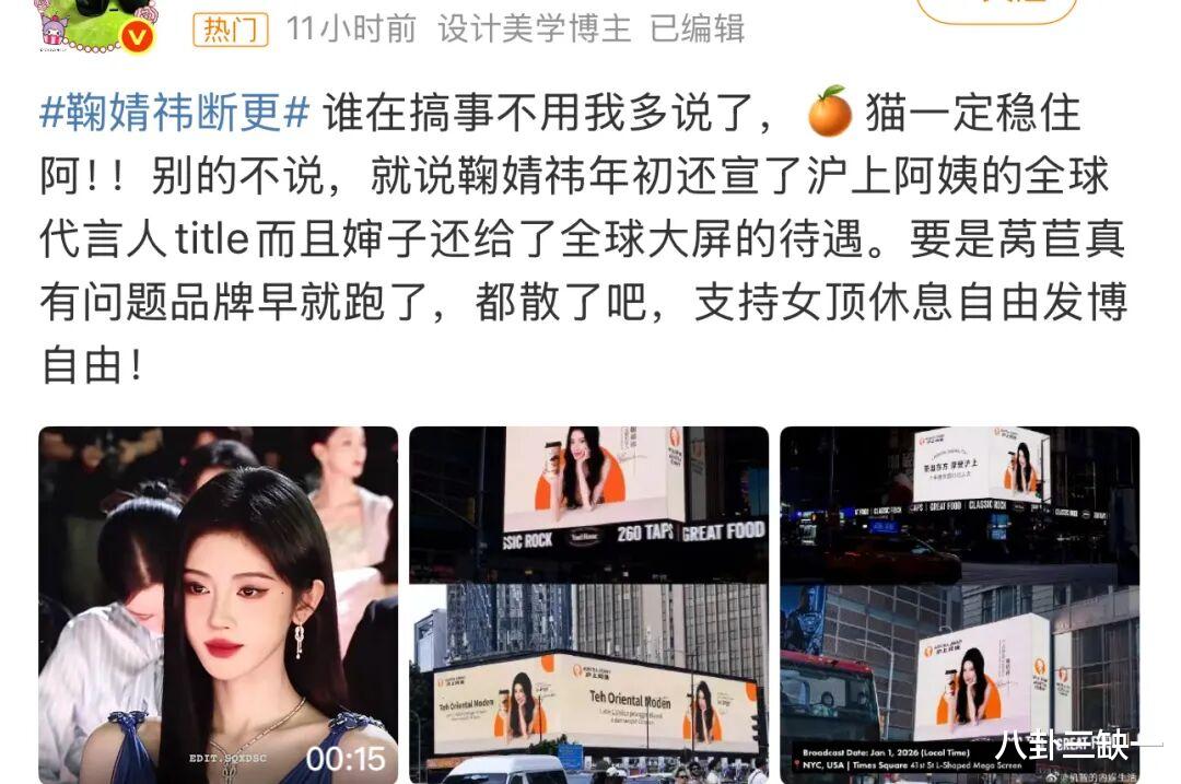 至于商业价值是否受损,1月1日沪上阿姨的高调官宣或许就是最有力的回应,不仅官宣她为品牌首位全球代言人,覆盖全国超9400家门店,其广告更是同步登陆了北京、上海乃至纽约时代广场的商圈大屏,排面拉满。