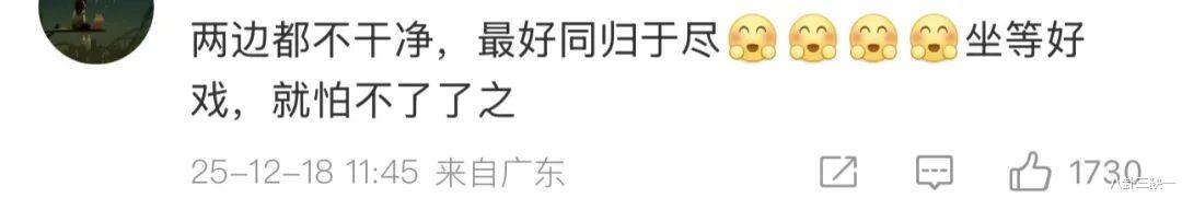 但舆论场就不那么单纯了,相关词条下一堆看热闹不嫌事大的路人,一口一个“千万不要和解”、“最好同归于尽”、“一起坐lao皆大欢喜”...