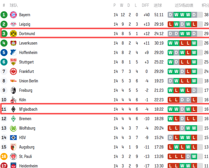 双方这赛季的排名简直是云泥之别啊!多特蒙德高居德甲第三,积分足足比排在第十一的门兴格拉德巴赫多了13分。