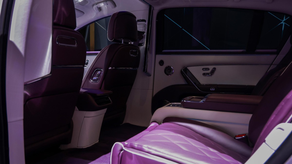 内饰方面,尊界S800展现出极致的工艺追求。大面积采用甄选全粒面头层小牛皮、天然真木饰板与高光金属装饰,每一处接缝都经过手工调校,触感细腻,光影流转间尽显尊贵气质。特别设计的晶钻切割水晶控制旋钮,不仅提升了操作质感,更成为座舱内的视觉焦点。而可升降投影幕布、隐私光幕玻璃与动态星空顶等创新配置,则精准满足了高净值人群对私密空间、移动办公与沉浸式娱乐的多重需求。