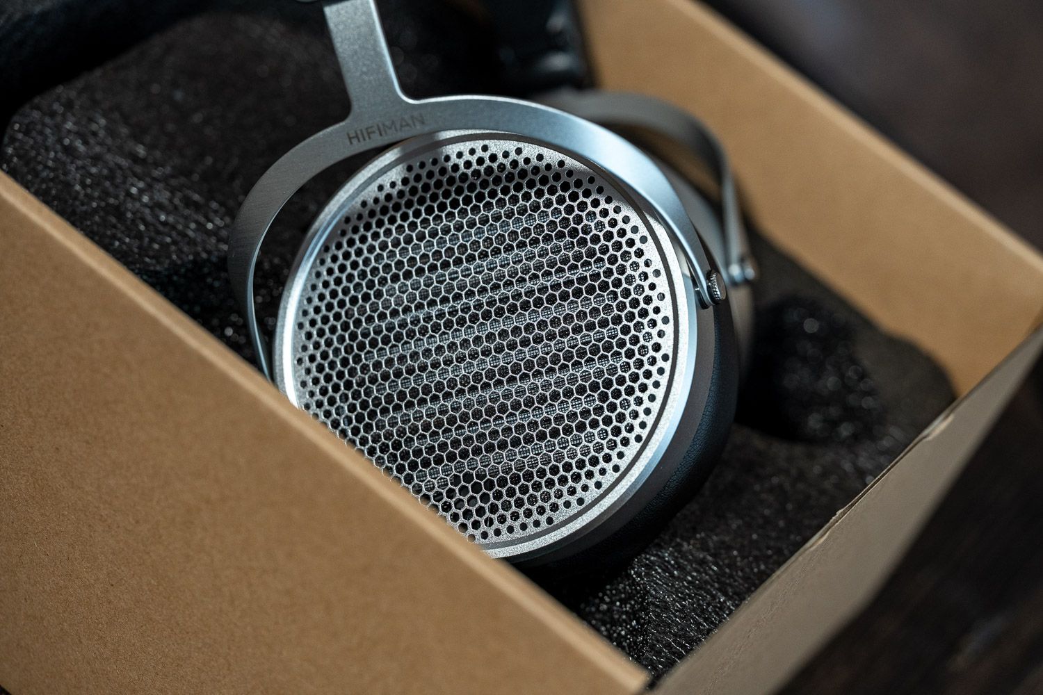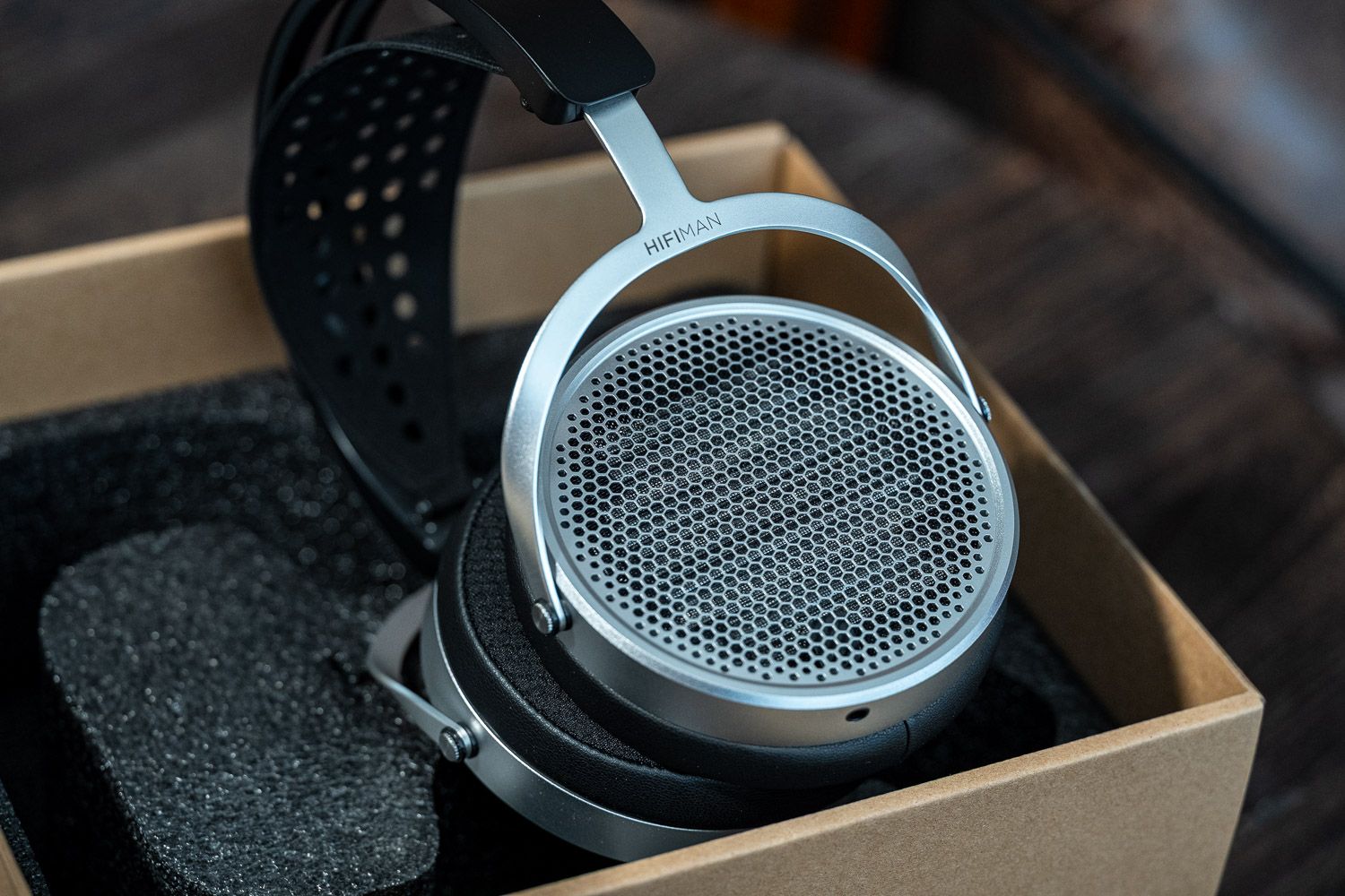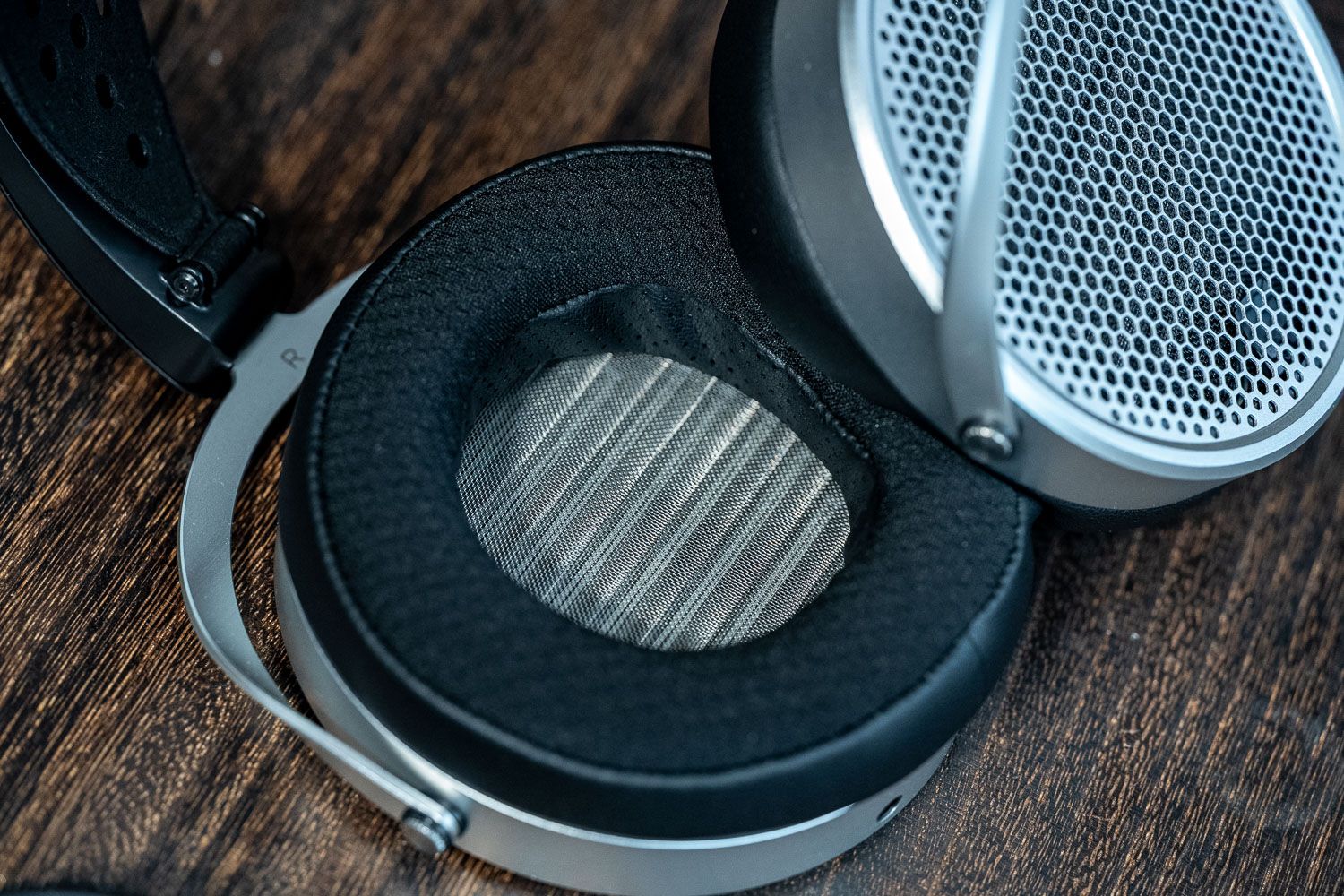 HIFIMAN家族的耳机大体上就是两种腔体设计,一类是HEK、Ananda系列的椭圆形,一类是Sus、HE6、ISVARNA这样的圆形,而HE600虽然没有用上Unveiled系列的纯开放式后腔设计,但也从设计层面也还是做了非常密集的开孔,内部的单元排列也与他们最新的几款产品并无二致,一看就是比较新版的技术方案。头梁部分的最大开合角度没Sus那么大,但拉到最底下的时候对我而言也算够用,会比图中另外的两款耳机更夹头一点,不如全新的几款Unveiled系列那么舒适,整体佩戴感受属于中规中矩,有条件的可以找个地方把头梁再往外撑开一点。不过因为我的头围本身异于常人,所以不必过分担心它的佩戴,截止发布文章之前,我认识的买到的朋友对佩戴都还是很满意的。