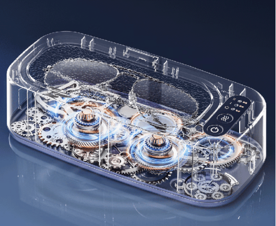 每一个微小气泡破裂的瞬间,都会产生局部高达上千个大气压的冲击波和时速超过400公里的微射流。正是这亿万次持续不断的微观冲击,像无数把看不见的高压水枪,能够温和且彻底地剥离物体表面的油脂、指纹,并精准穿透眼镜鼻托、首饰花纹、牙刷毛缝隙等手洗根本无法触及的死角,将污垢“震”出来。