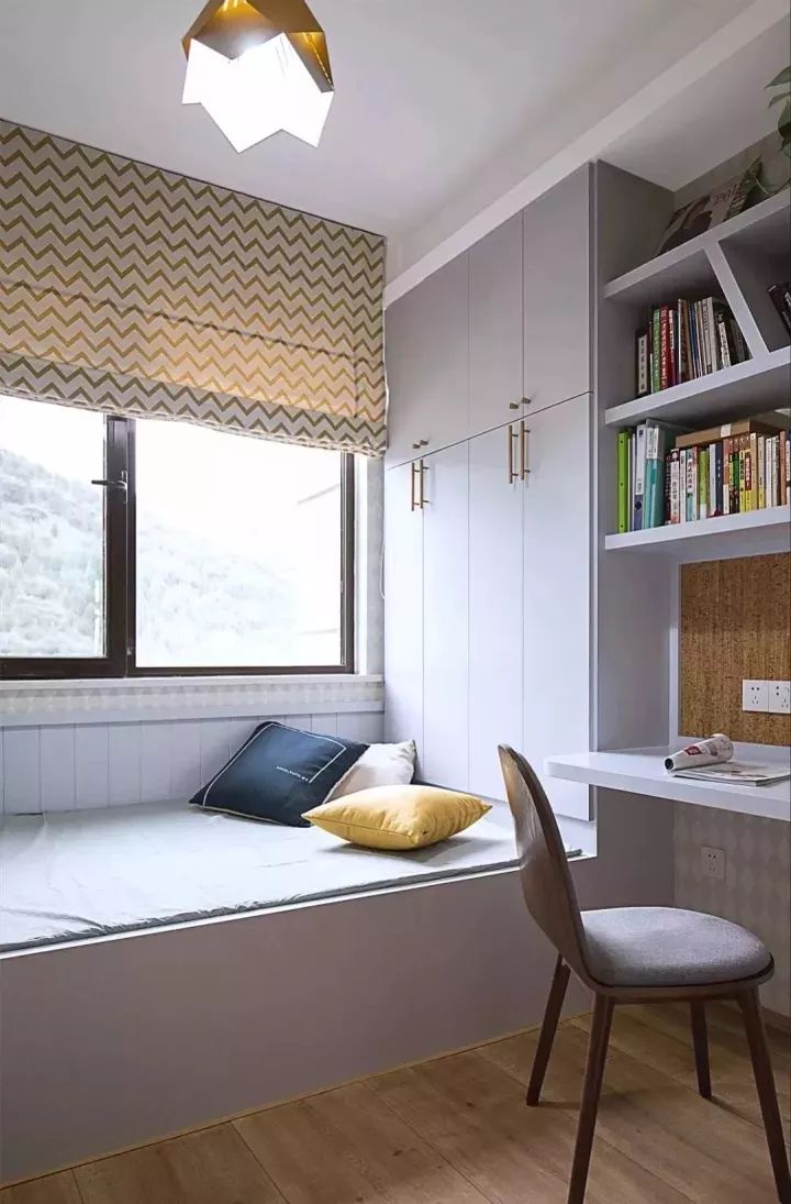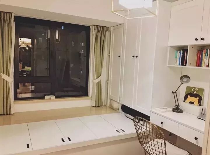 如果卧室有个飘窗就更棒了,直接把榻榻米和飘窗结合起来,整个房间的空间就会显得更大上几分,看起来舒服多了。