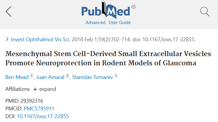 《Mesenchymal Stem Cell-Derived Small Extracellular Vesicles Promote Neuroprotection in Rodent Models of Glaucoma》聚焦于间充质干细胞衍生的外泌体在青光眼治疗中的潜力。研究团队构建了青光眼大鼠模型,并将其分为三组:健康对照组(5只大鼠)、青光眼模型实验组A(30只大鼠,通过前房内微珠植入诱导眼内压升高)和青光眼模型实验组B(35只大鼠,采用小梁网激光凝固术造成眼内压上升)。