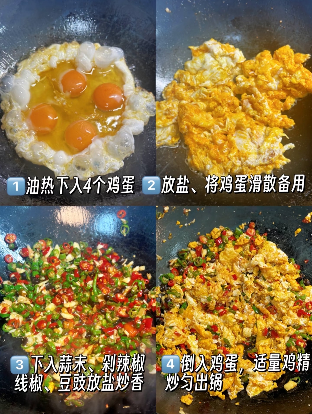 2. 火候分两头:炒鸡蛋用中火,要嫩;炒辣椒用大火,要香。分开炒才能保证口感。