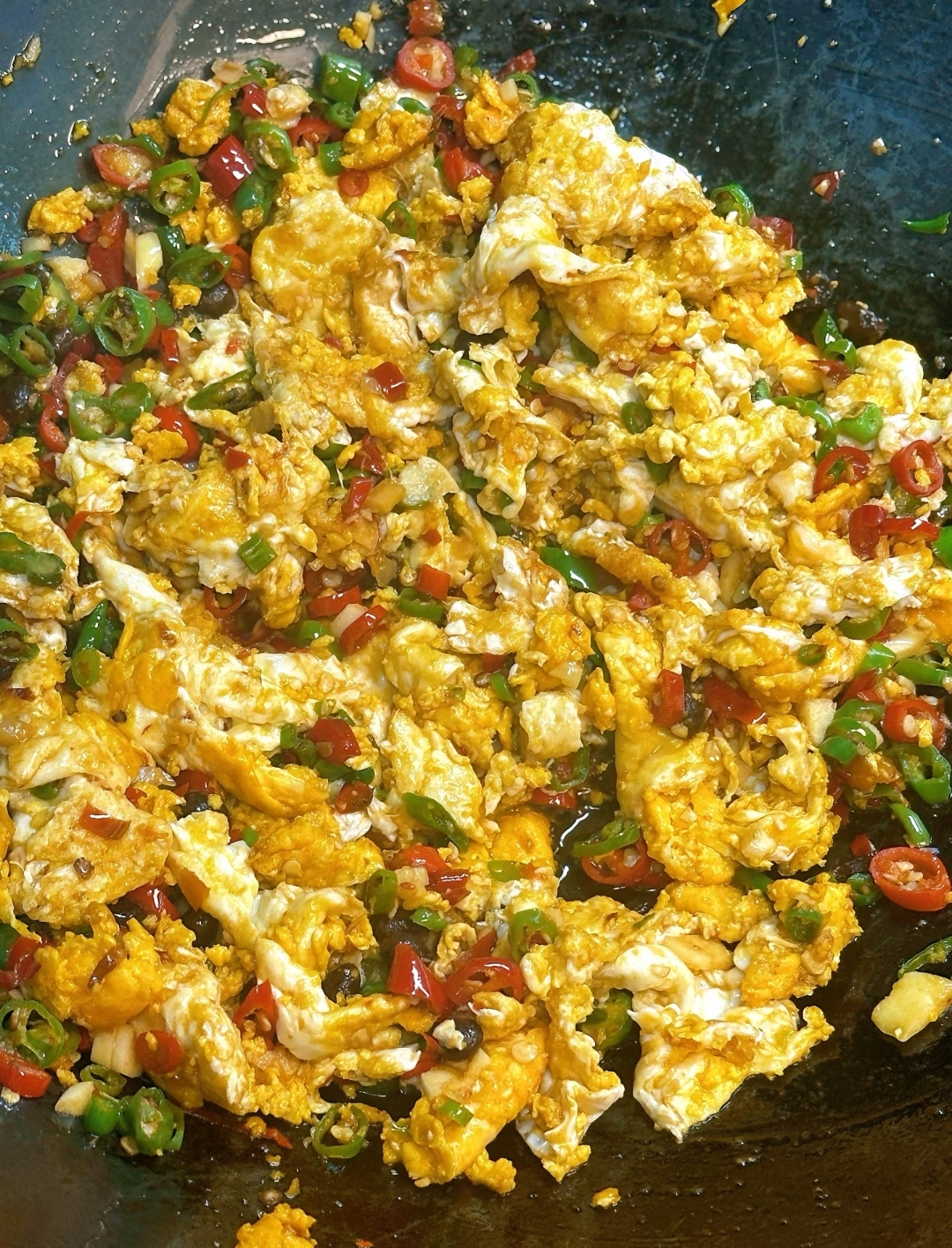 3. 油要多一点:这道菜不是清炒,油润才下饭。油能锁住辣椒的香辣味,也能让鸡蛋更滑嫩。