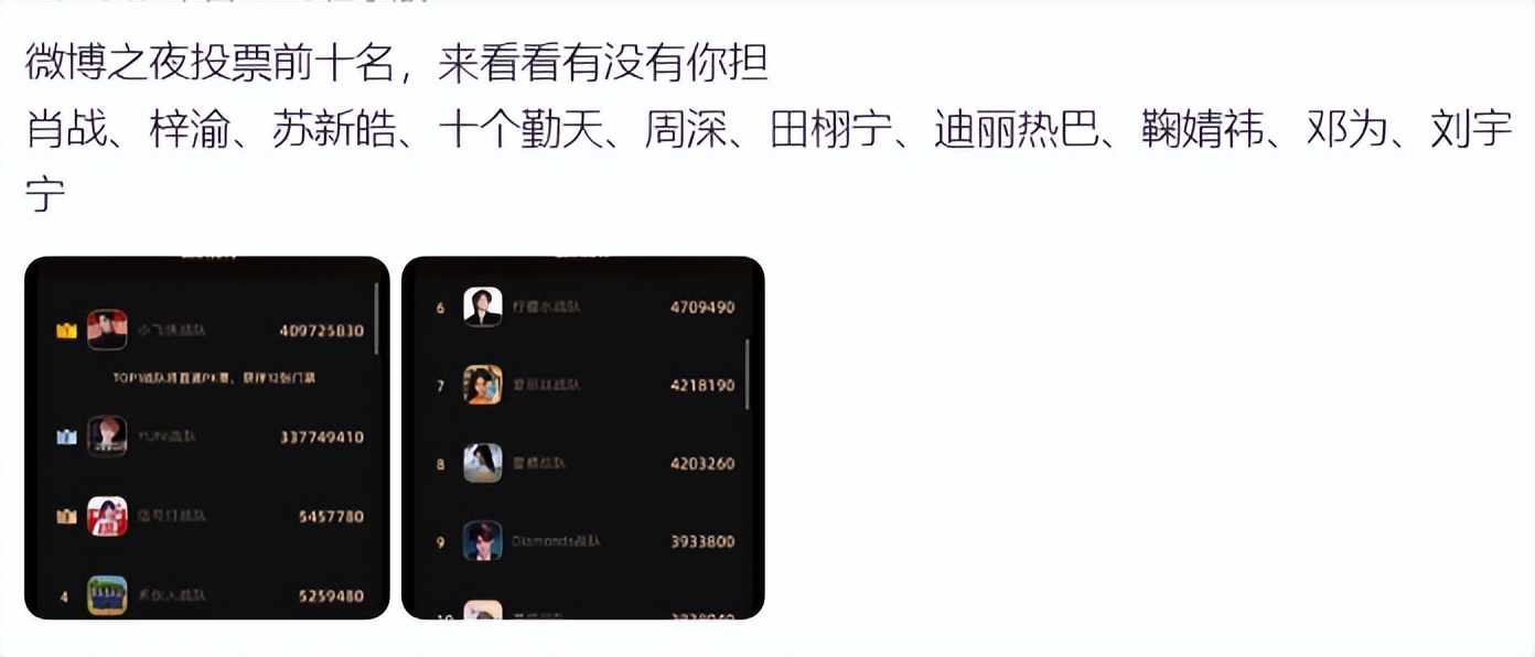 我们可以看到,小飞侠们先是快速登顶,然后开始“守榜”,经过激烈的打拼,最终小飞侠战队获得第一一,不仅直接拿到12张微博之夜门票,还跳过PK赛,最关键的是,在打投的过程中,很多路人都纷纷下场支持肖战,这再次证明肖战的国民度。