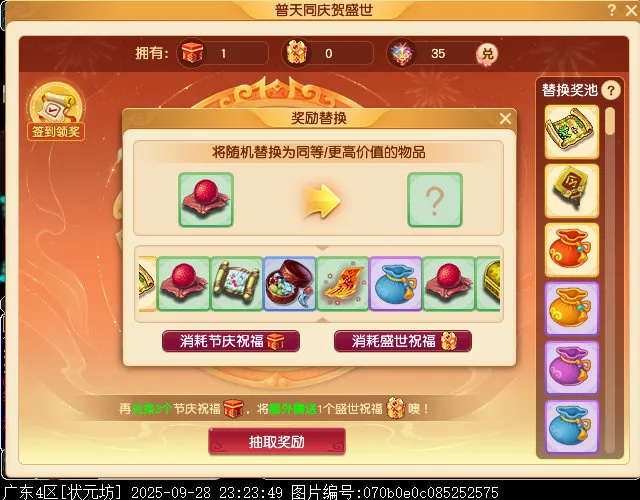官网的替换规则有点把人绕晕的感觉,不用去理解,实际你只要看上面的烟花数目,然后替换时循规蹈矩地消耗/合成即可。其中,替换物品是需要看动画的,抽奖时也要看动画,且无法跳过,并且抽之前还有个弹窗提醒,这里面就有隐藏的时间成本,散人会觉得很烦,多开建议在系统跑动画时操作其他号,可提升抽奖体验。