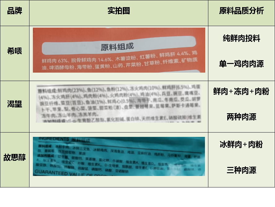 故思醇这款猫粮主要用了冰鲜肉和肉粉,相对来说品质均衡,肉类用了牛肉、三文鱼、鸡肉三种,提供复合蛋白。