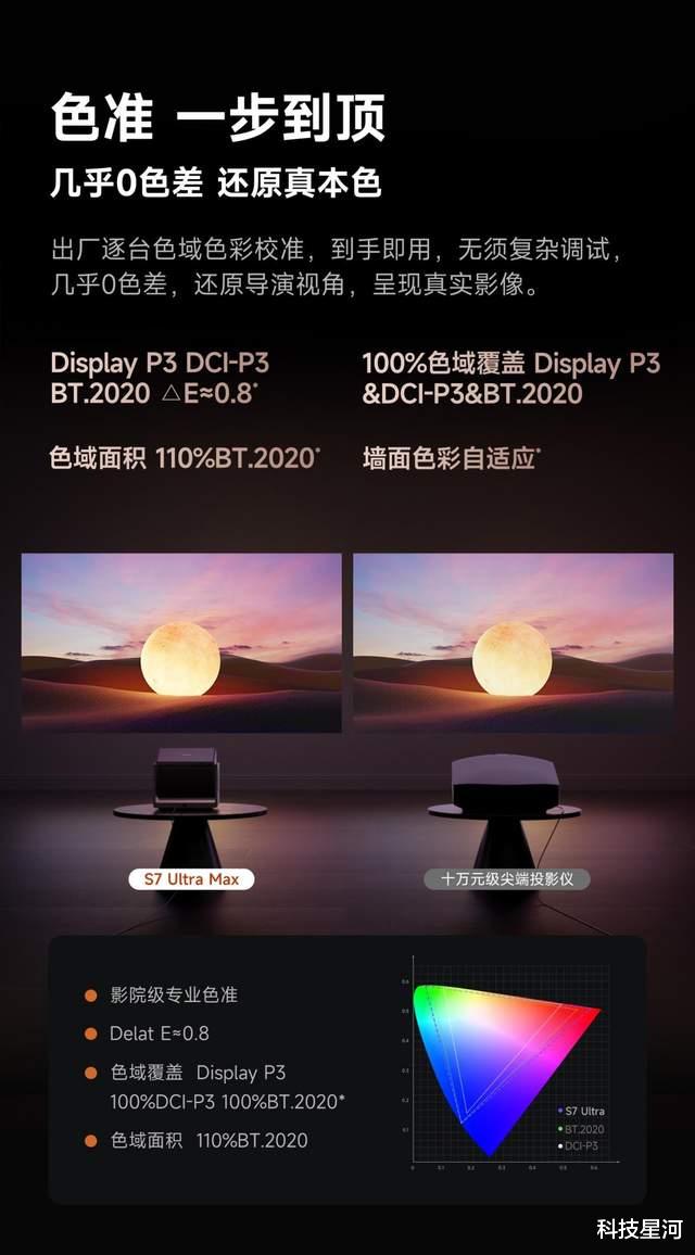 2.色准与解析力的双巅峰当贝S7 Ultra Max的 ΔE≈0.8色准精度与科视高端工程投影处于同一水准,且 100% 覆盖三大专业色域,远超行业平均水平。其搭载的松林大师金圈镜头与巴可、科视同源,解析力达 131LP/mm,比传统镜头提升 40%,能清晰呈现4K画面中的毛发纹理、金属质感等细节,甚至超越部分十万元级影院设备,可以更精准的将杜比视界画质展现出来。