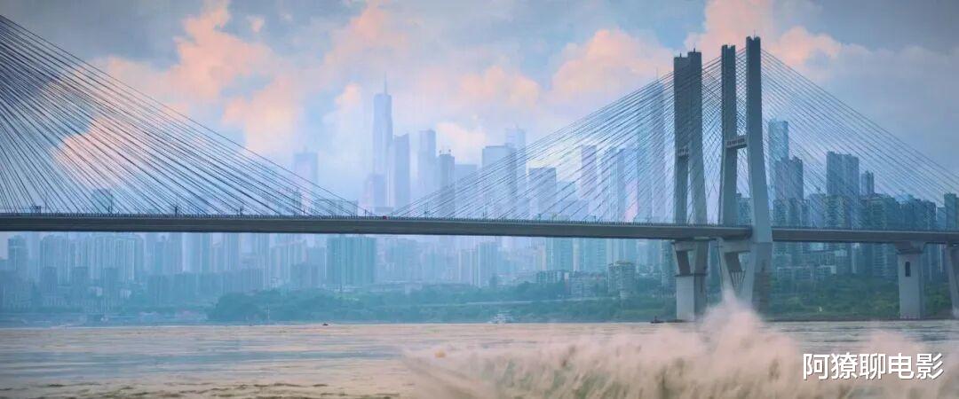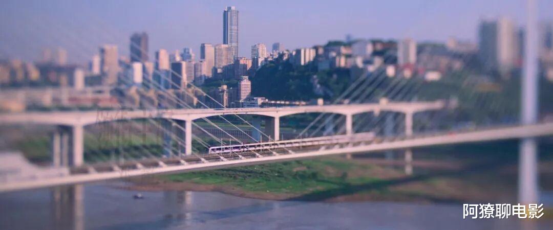 片尾有几处重庆两江四岸的虚化镜头。这张江中的是珊瑚坝,远处的是长江大桥与它的复线桥,近处跑列车的是10号线轨道桥。