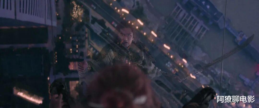 全片最精彩的片段来了,小说中的人物全员穿越到了现实世界——赛博朋克之城重庆。第一站便是来福士高空玻璃观景台。就连天不怕地不怕的赤发鬼与常在云端驾驶飞行器的入云龙腿肚子都在打颤。