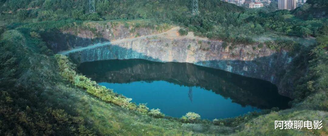 铜锣山矿山公园位于重庆市渝北区石船镇、玉峰山镇,有41处矿坑遗迹,含12个蓄水矿坑,如今已生态修复成为了景区。画面中的是比较大的一个坑。