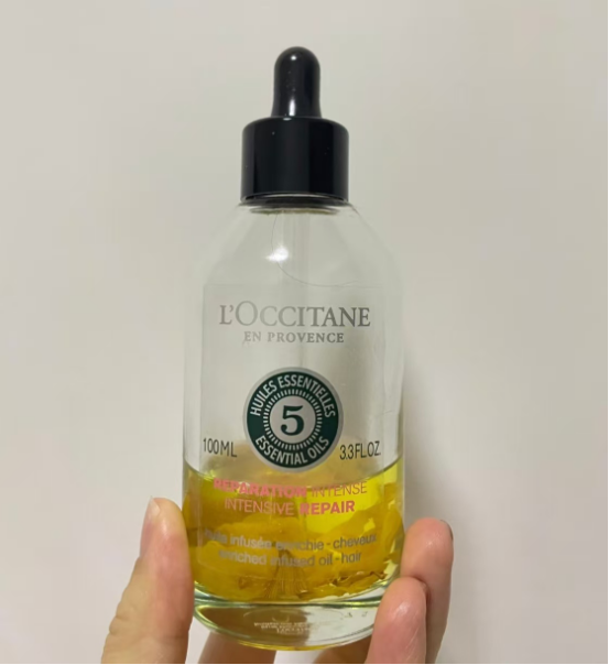 (4)使用体验这款精油的质地相对较为油腻,涂抹时不容易均匀分布,吸收的速度也稍微慢一些。因此,建议在手心稍微揉搓后再涂抹在头发上,这样能更好地被头发吸收。如果没有完全吸收,手上可能会留下油腻感,因此对于合油性发质来说不是很友好,另外对于受损较为严重的发质来说,效果也可能不会特别显著。