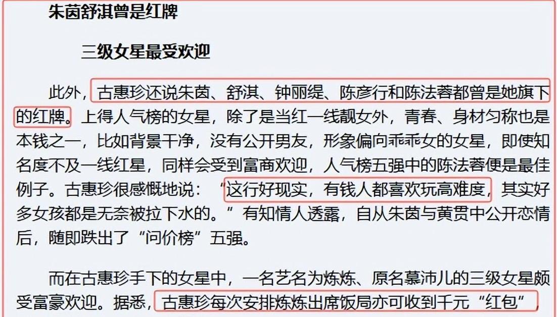 就是那些富豪们想通过一起吃饭,认识更多漂亮的女生。当然啦,这种清汤寡水似的吃饭情况其实很少见。再有一种叫“倾慕邀约型”,就是富豪通过像古惠珍这样的中间人牵线搭桥,然后就开始疯狂地追求女明星……大多数情况下,都是那种带点暗示意味的饭局,说白了就是所谓的“权钱色交易”。揭秘:富豪与女明星的隐秘交易