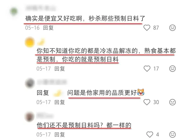 此外,悄咪咪说一句,有很多网友说,“寿司郎和别的妖艳贱货预制日料不一样”。